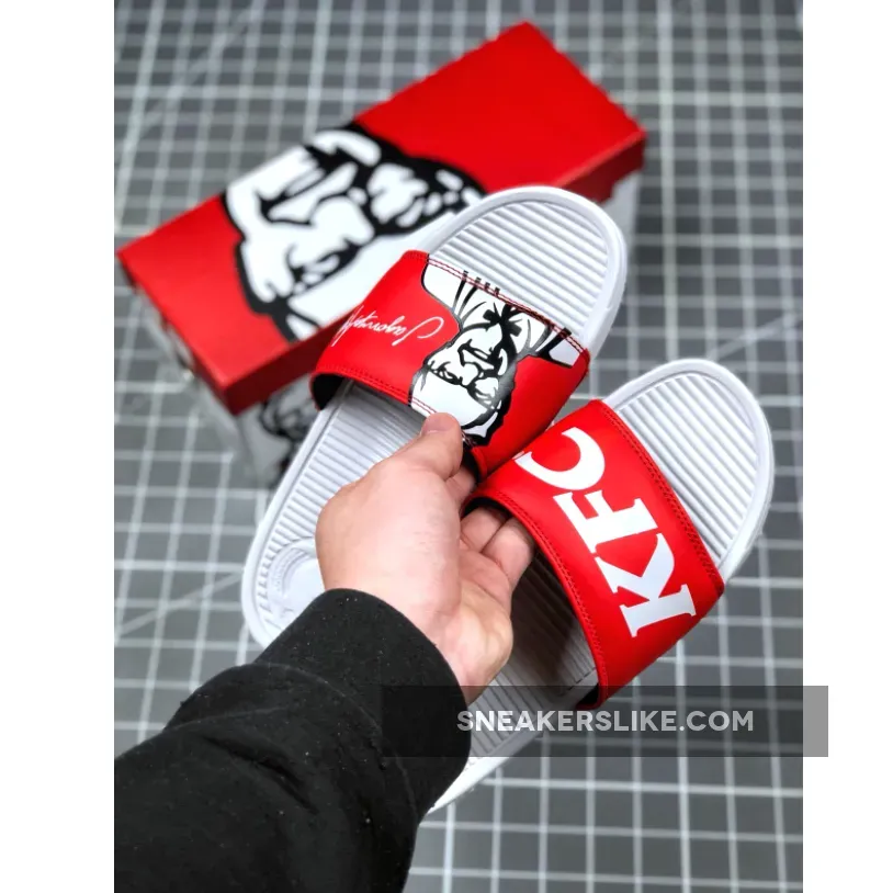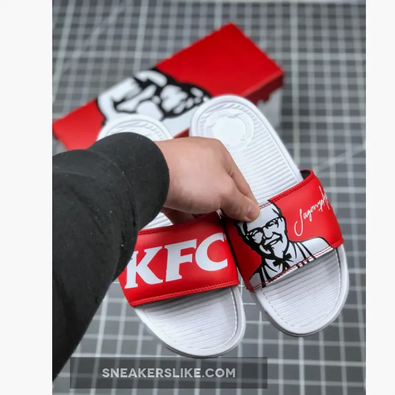The slides on offer play on KFC’s iconic branding as they are adorned with slogans such as “SANDALBOYZ Original Recipe” and sport Colonel Sanders’ face, as well as the fast-food chain’s logo on the slides’ footbridges. The clean white base is contrasted by the red-and-white colorway synonymous with KFC, while the duo pay homage to SANDALBOYZ’s Indonesian roots and the 750-plus restaurants in the country with the saying “Jagonya Ayam.” which translates to “Chicken Experts,” a term coined by KFC Indonesia when sponsoring the racing driver Sean Gelael.