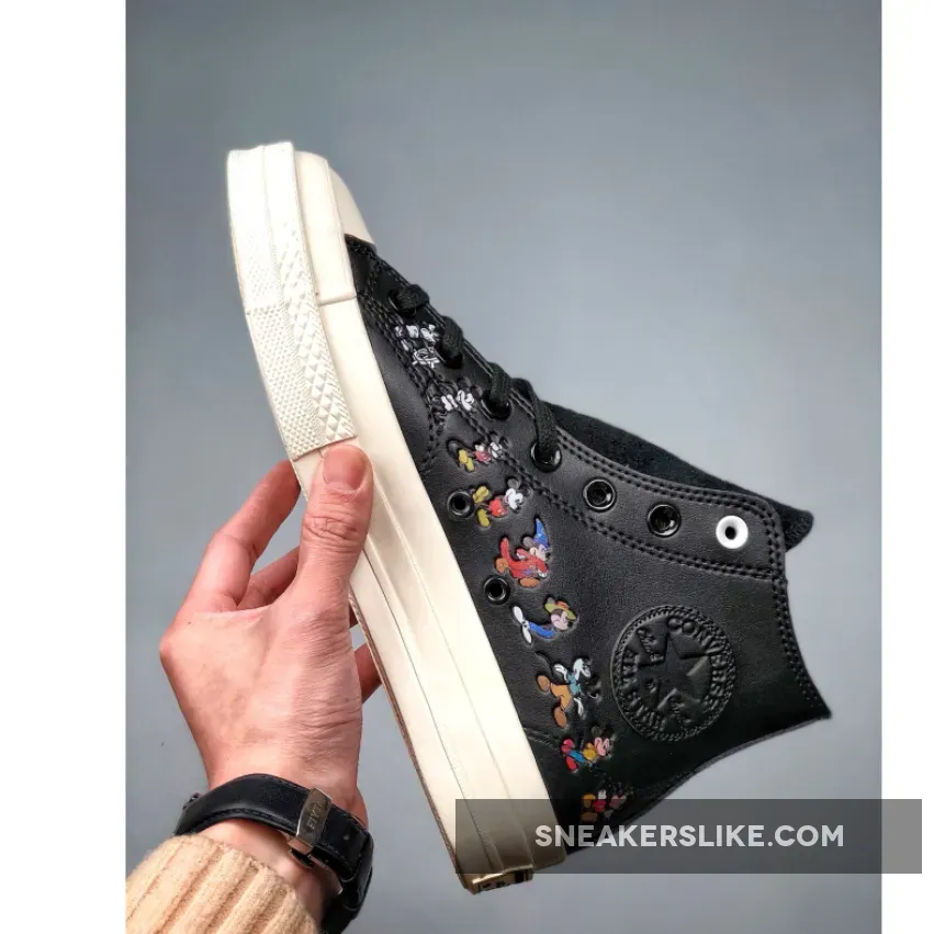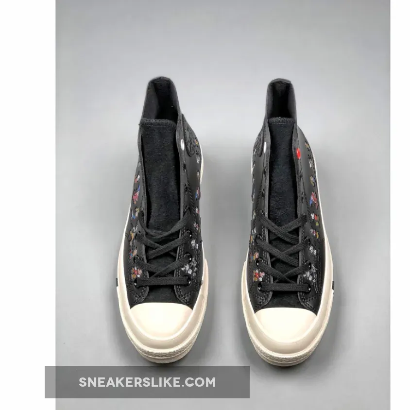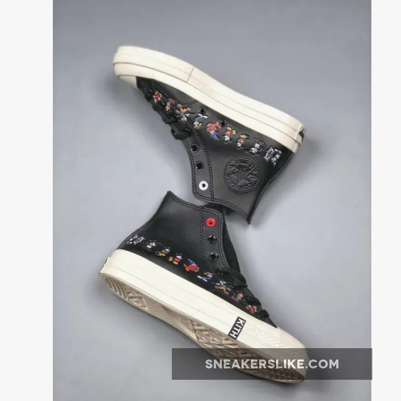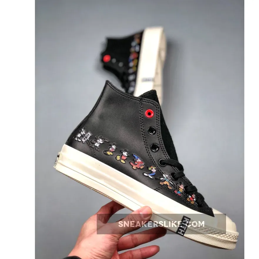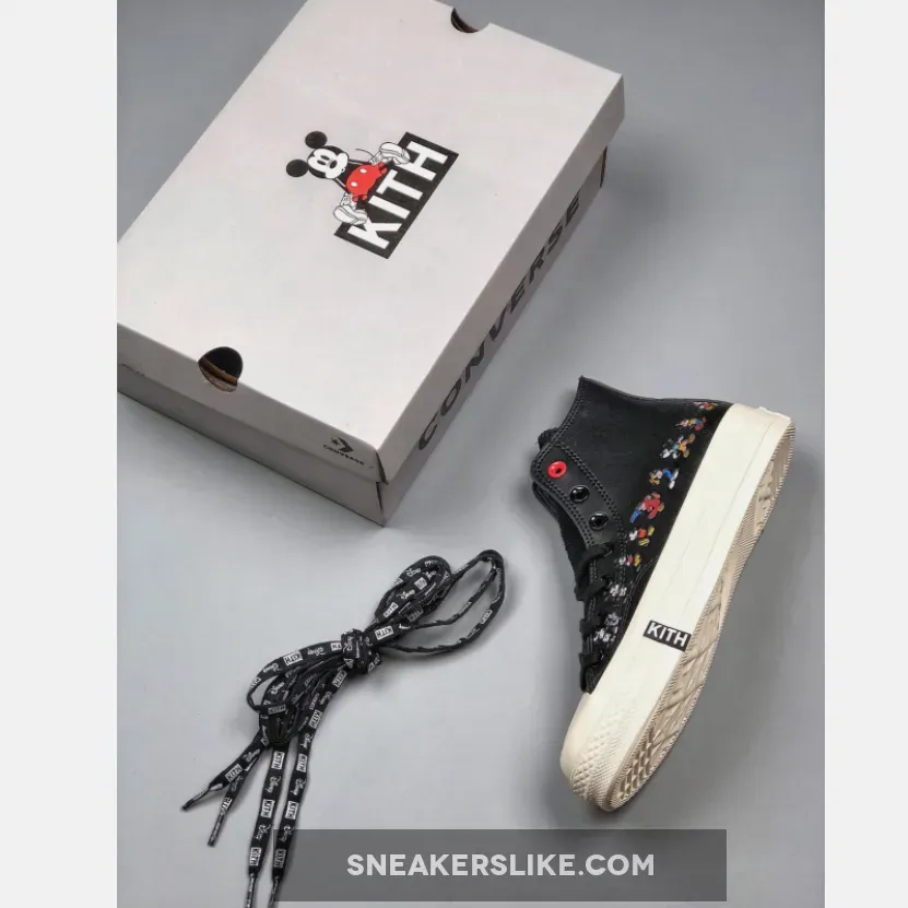 Solid construction and timeless design make the KITH x Converse x Disney Chuck 70 Hi Mickey Mouse Black a must-have for collectors. The debossed prints and generational portraits add a touch of nostalgia and elegance, while the comfortable materials ensure durability. Overall, a premium and stylish shoe.