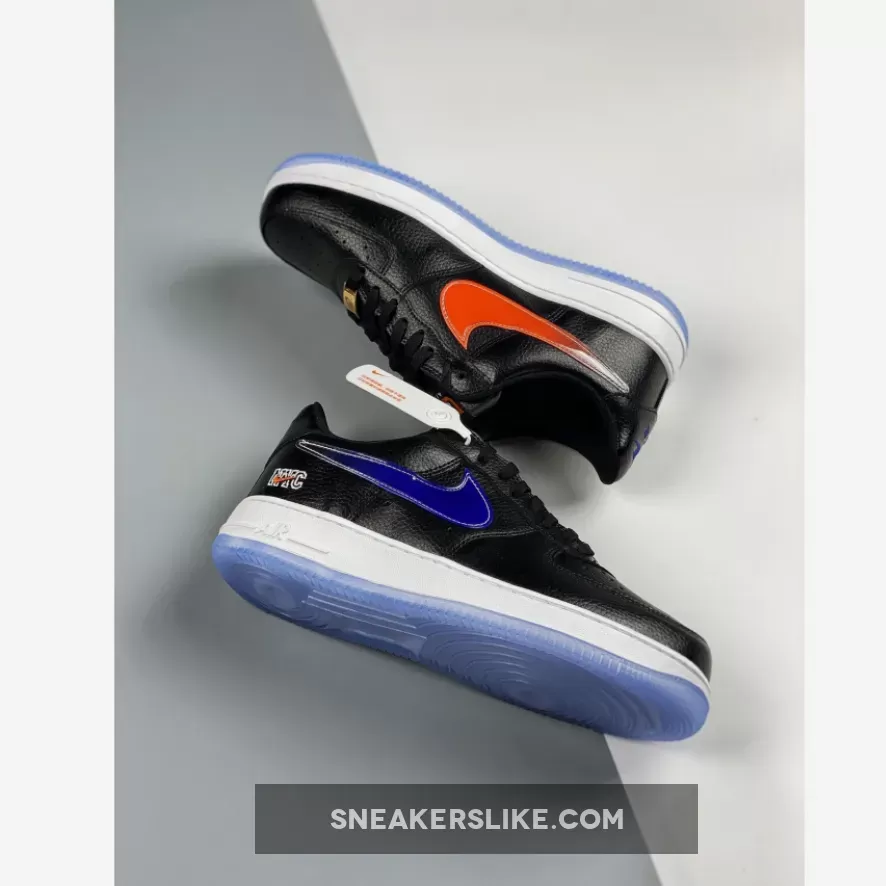 One pair comes dressed in a Black, Team Orange, and Rush Blue color theme, while the second features White, Rush Blue, and Brilliant Orange. First, they come highlighted with Black leather across the upper. Also, the two have a mismatched semi-translucent TPU Swoosh logo that comes in Orange and Blue. In addition, we have Kith branding on the tongue tags and embroidery by the heel. Other details include Metallic Gold lace dubraes, White on the midsole, and an icy translucent outsole.