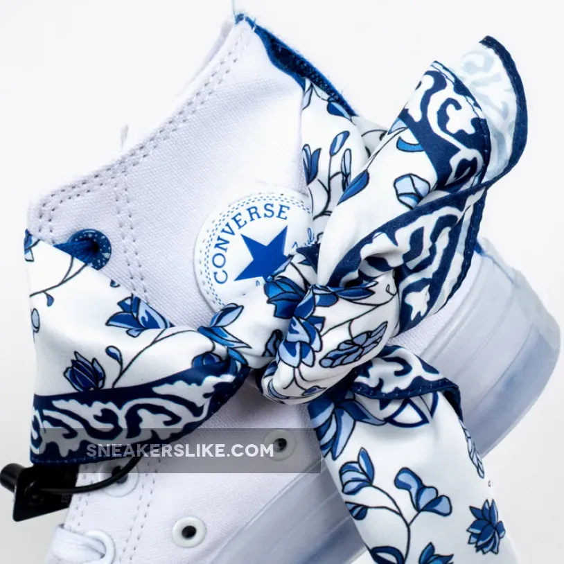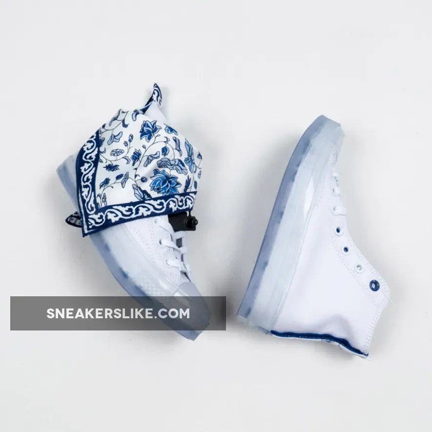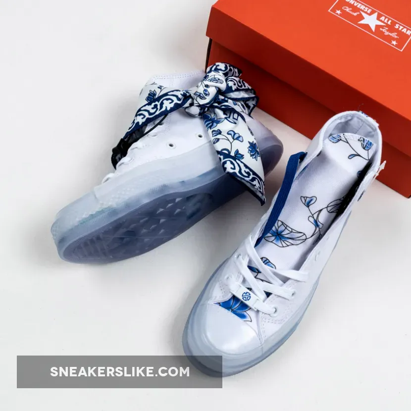 EAST MEETS WEST. AN EXPLOSION OF PROGRESS. Converse teams up with Lay Zhang for a second collaborative shoe that blends traditional Chinese culture with the classic Chuck 70 silhouette, to create an explosion of “East meets West”. From dancing to producing music, Lay Zhang is constantly pushing himself and expressing himself through his innovative work. This collaborative design is inspired by the traditional Chinese cultural symbol “Blue & White Porcelain”, and includes a lotus flower detail that represents Chinese culture , while the Bandana represents dance inspiration from the west; the blend of these eastern and western details sit atop a “glow in the dark” outsole. Lay Zhang and Converse together, have broken the cultural boundaries with this collaboration to erupt a side of creative freedom through traditional Chinese culture — founded upon elements of the traditional past, to create a dynamic future.