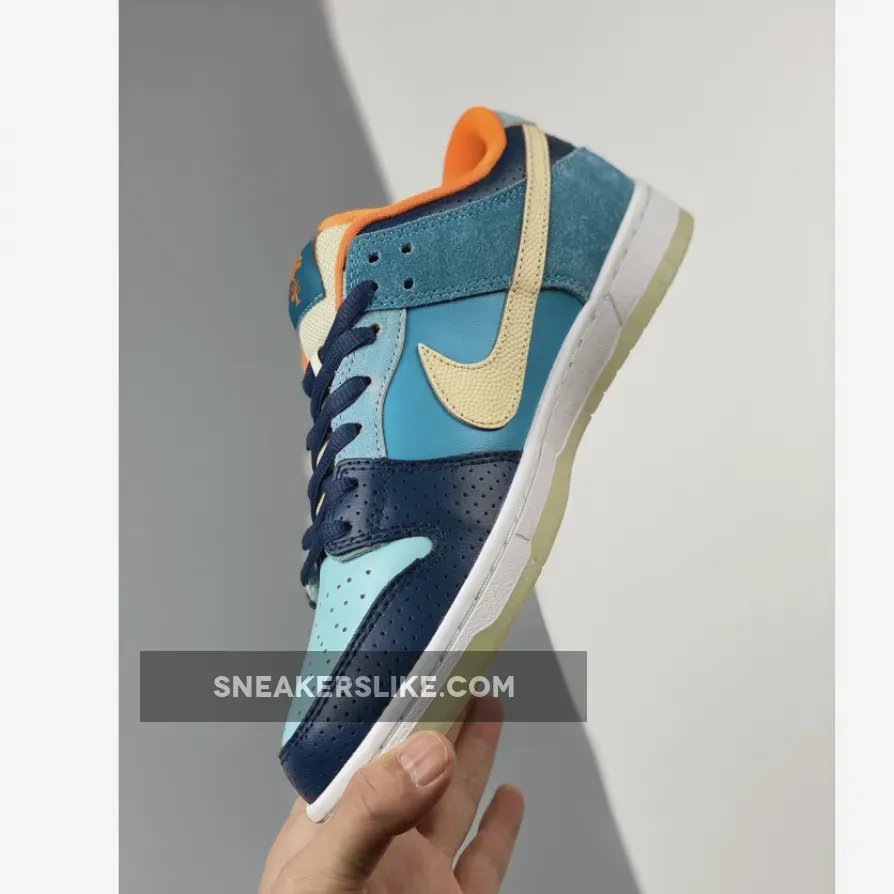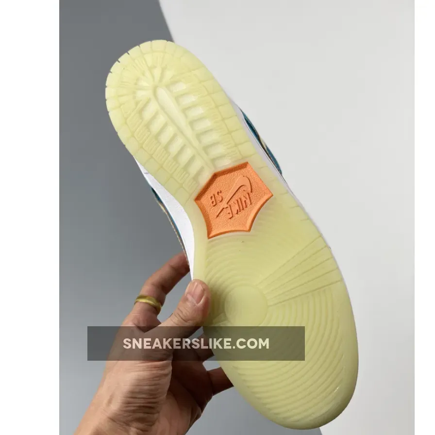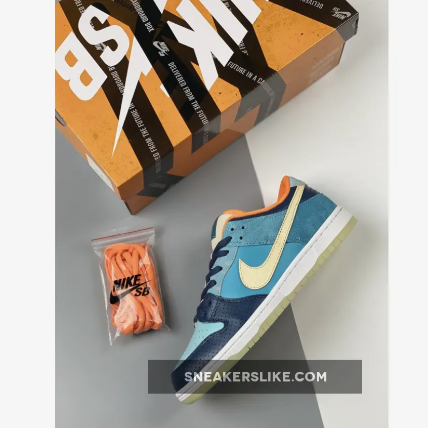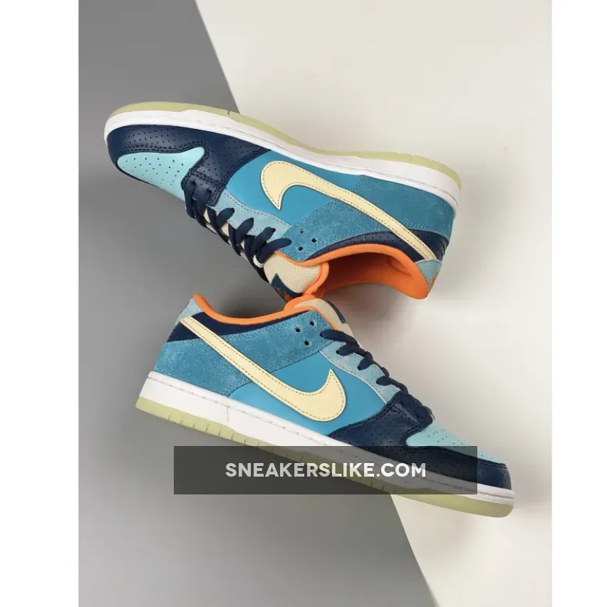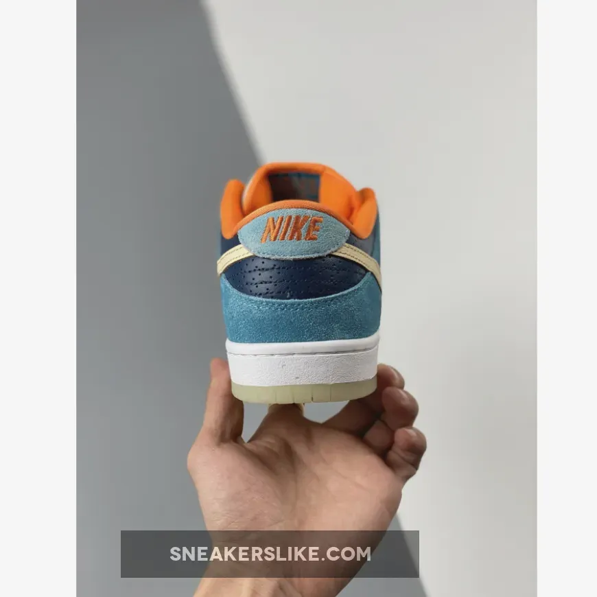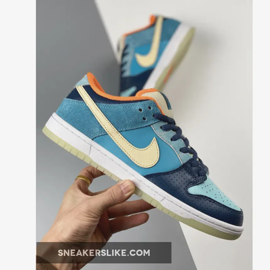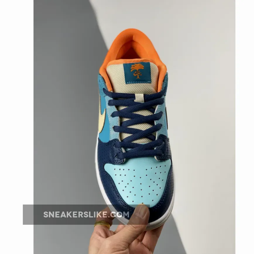 Releasing in 2013, the Dunk Low Premium SB QS ‘Mia Skate Shop 10th Year Anniversary’ celebrates the Miami, Florida, skate shop’s 10th year in business. The upper features several shades of blue across its suede and perforated leather build, with a unique water-like graphic panel on the ankle. The beach theme extends to the tan pebbled Swoosh, while a custom orange palm tree logo emerges on the padded mesh tongue. Another palm tree appears on the custom footbed, and the shoe rests on an icy translucent outsole. The shoe dropped at an MIA Skate Shop x Nike SB Pop-Up in Miami on Go Skateboarding Day.