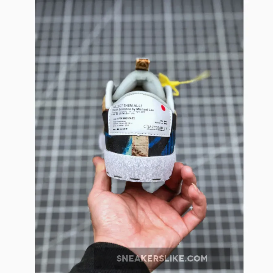 Hong Kong-based artist Michael Lau is widely considered to be the godfather of vinyl toy figures and is also known for his signature illustration style, but now he’s bringing his fiercely unique ethos to yet another chapter in his long-running partnership with Nike. Lau and the Swoosh Brand’s Nike SB skate subdivision have joined forces once again for special SB Blazer Lows that the artist has titled “Salvator Michael” — a centerpiece character featured in the artist’s current COLLECT THEM ALL. exhibition in Shanghai — and dressed with a unique all-over print due to different cuts on the canvas. The right shoe’s standard branded heel tab is also swapped out for a gallery tag graphic that provides info on both Lau’s “sixth exhibit” and the shoes themselves. Unique stylings don’t stop with the shoes themselves, however: they come packaged in a large co-branded wooden box, secured by two rubber straps and featuring yet another gallery tag. Many long-time fans may remember that this isn’t Lau’s first go-around with the Nike Blazer either, as he worked on a “Beijing BMX” edition back in 2008.