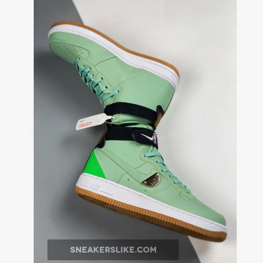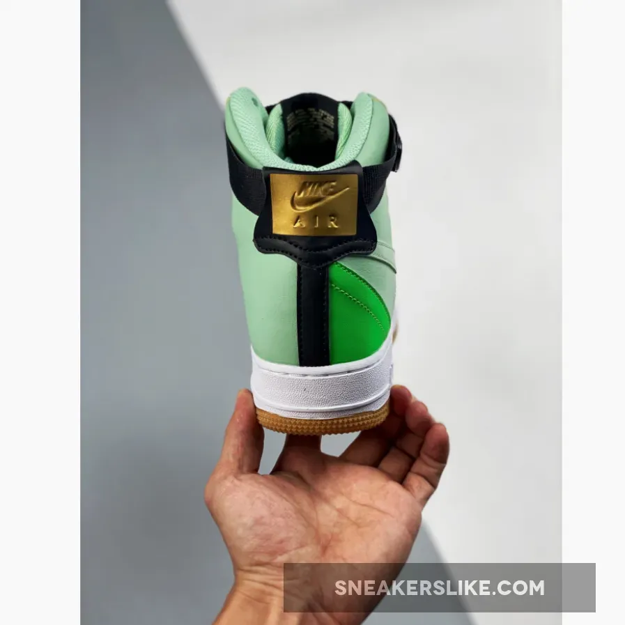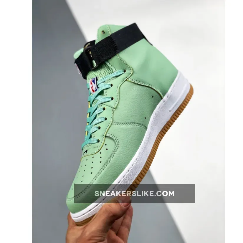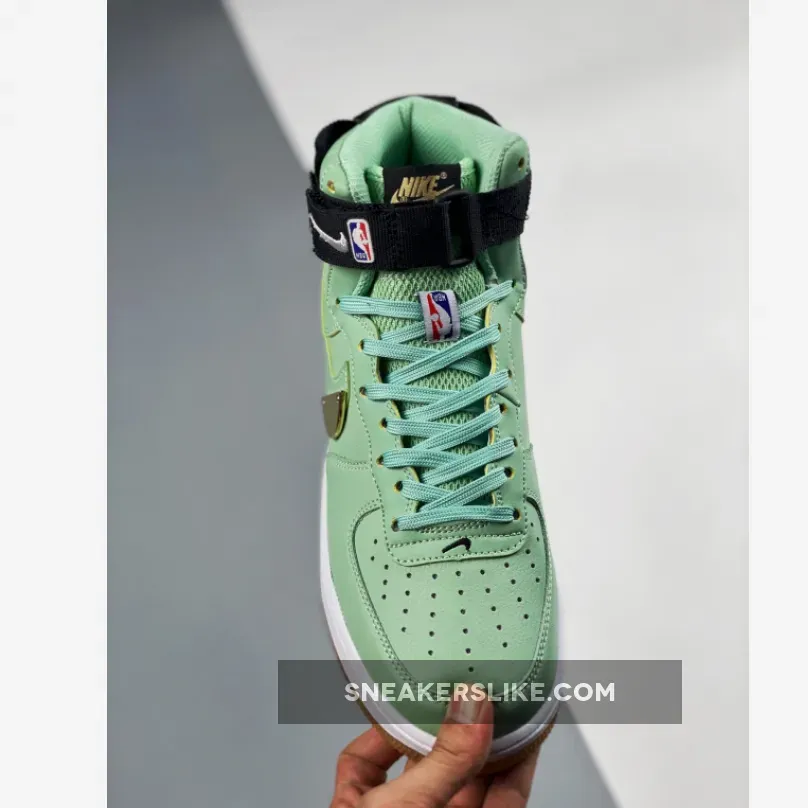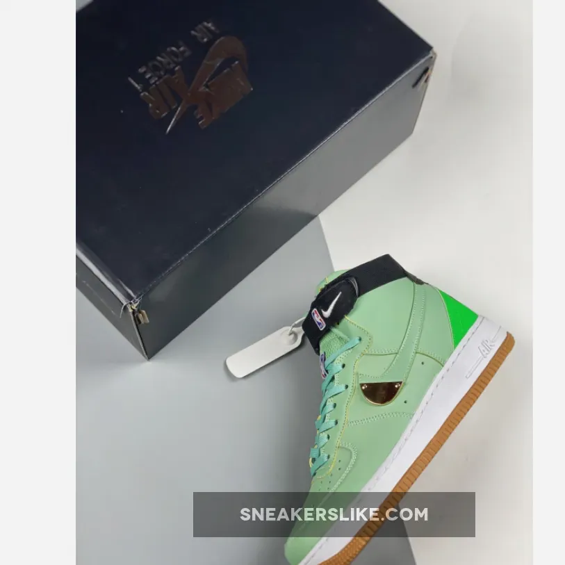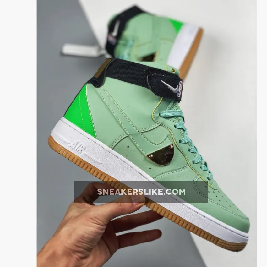 “I’m thoroughly impressed with the NBA x Nike Air Force 1 High Celtics Green. The soft green leather and black straps give it a sleek look that’s perfect for casual wear. I love the gold plating at the Swoosh – it’s a nice nod to the league’s jewelry ban. The duct tape on the rear branding adds a touch of humor, too. Overall, this shoe is a slam dunk (pun intended)!”