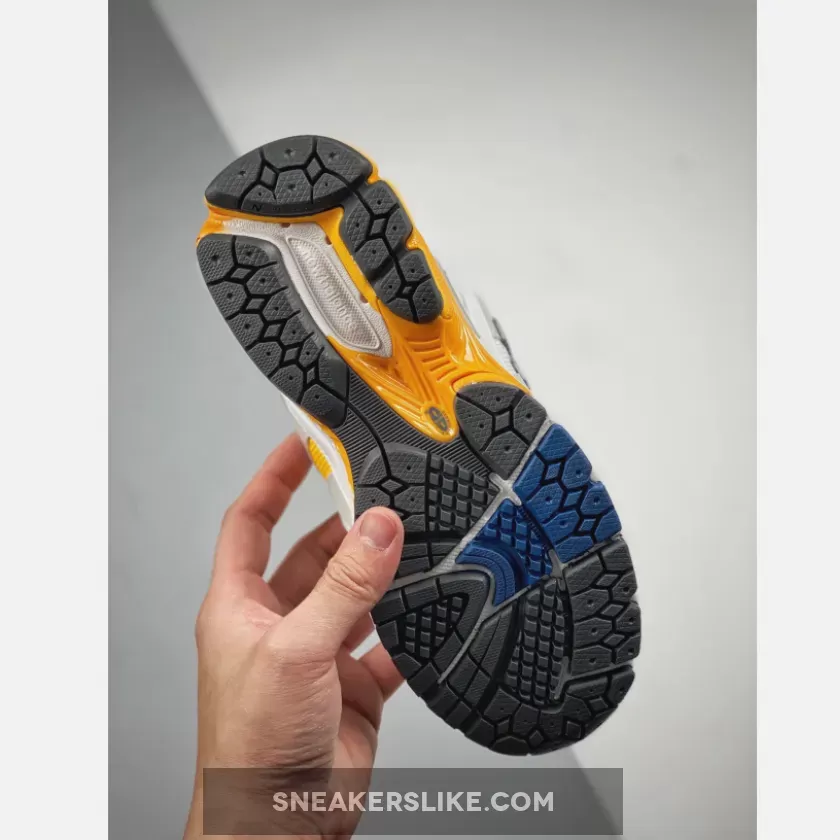 The 12-year-old New Balance 2002R has a back-to-the-basics new variant with a golden touch. Meet the New Balance 2002R White Lagoon. The base of this NB 2002R is a wide-holed white mesh while the overlays are a combination of white leather, shimmery silver and navy-hued Lagoon suede. The “N” logos on the lateral sides of the shoe feature N-ergy branding in golden yellow. More pops of golden yellow appear on the collar and the branding on both the tongue tab and the heel. Lagoon blue repeats on the eye stay accent and the mesh sock liner.