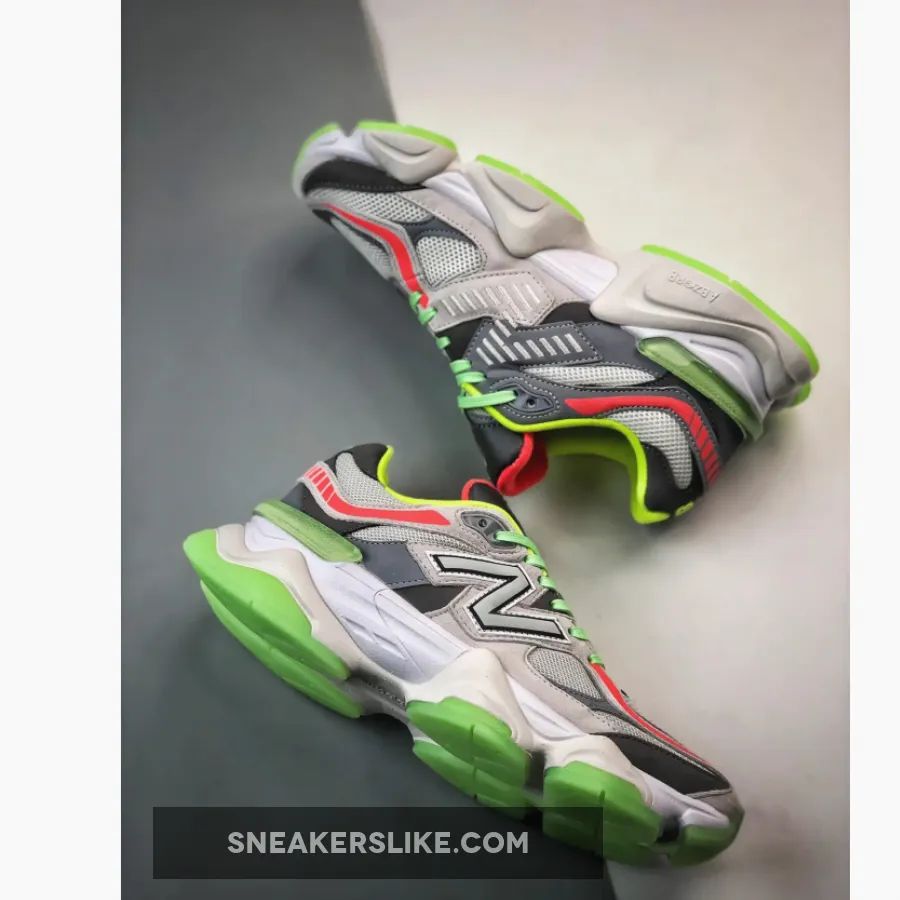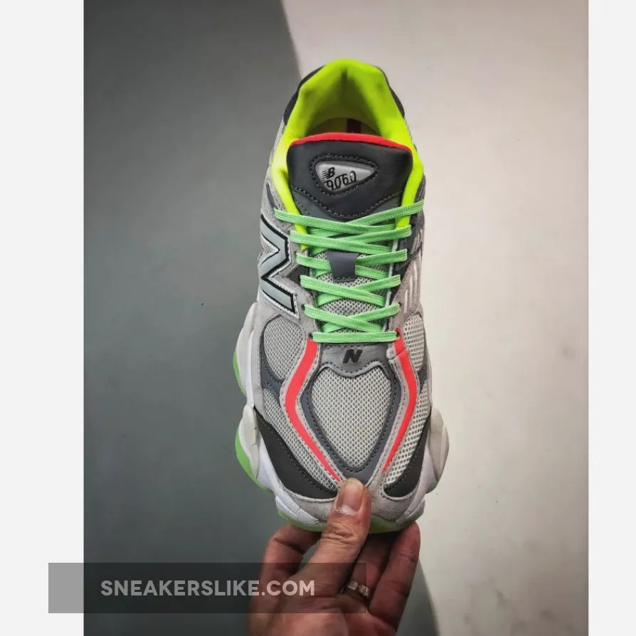 Dubbed the “Glow” 9060, this DTLR-exclusive take screams long summer nights with vibrant colors, glow-in-the-dark hits, and breathable materials. It features different Grey tones covering its upper highlighted with vibrant Green, Volt, and Crimson contrasting accents. Other details includes glow-in-the-dark lateral “N” logos, tongue tabs, and rubber outsole with “NB” embroidered heels. Traditional lacing system atop a dual-density ABZORB and SBS foam midsole completes the design.