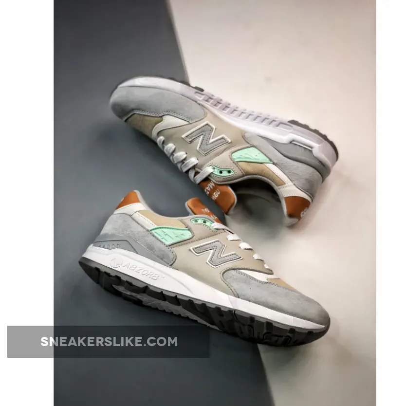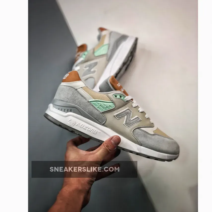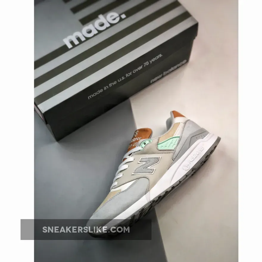 This is a “US Made” retro running shoe from New Balance that is combines a muted color palette with premium materials.