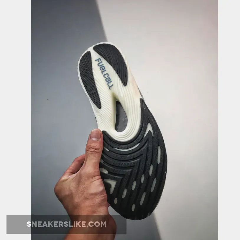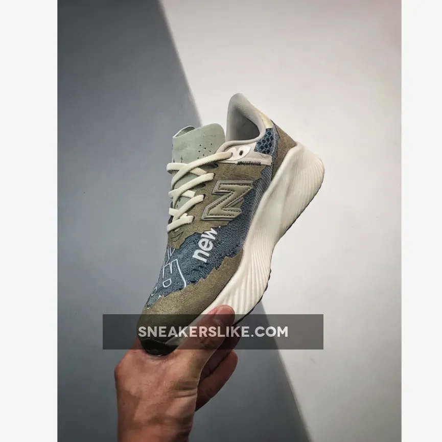 The FuelCell RC Elite V2 resurfaces in a modern edgy design. The Tokyo Design Studio creation is remixed with a layered look. The base is a durable pale blue woven knit material that provides a snug fit. The colourless “N” branding is still in place as well as the white laces and lightweight tongue.