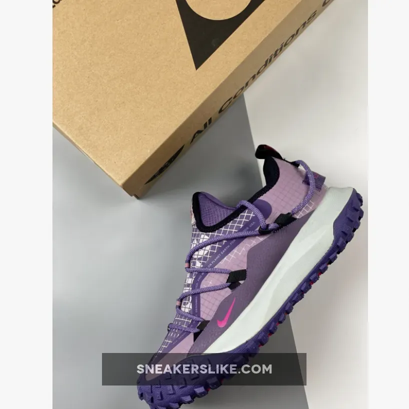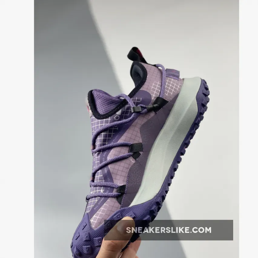 the silhouette appeared in a “Canyon Purple/Amethyst Rock” colorway that harkens back to the eye-catching aesthetics the Swoosh applied to their hiking models back in the 1980s. Weather-resistant nylon sets the stage for weatherized leather and canvas elements across the upper, which also boast a dark shade of purple. The waffle-patterned tread underfoot (which also covers the tip of the toe) rounds out the ensemble’s color palette and ruggedness