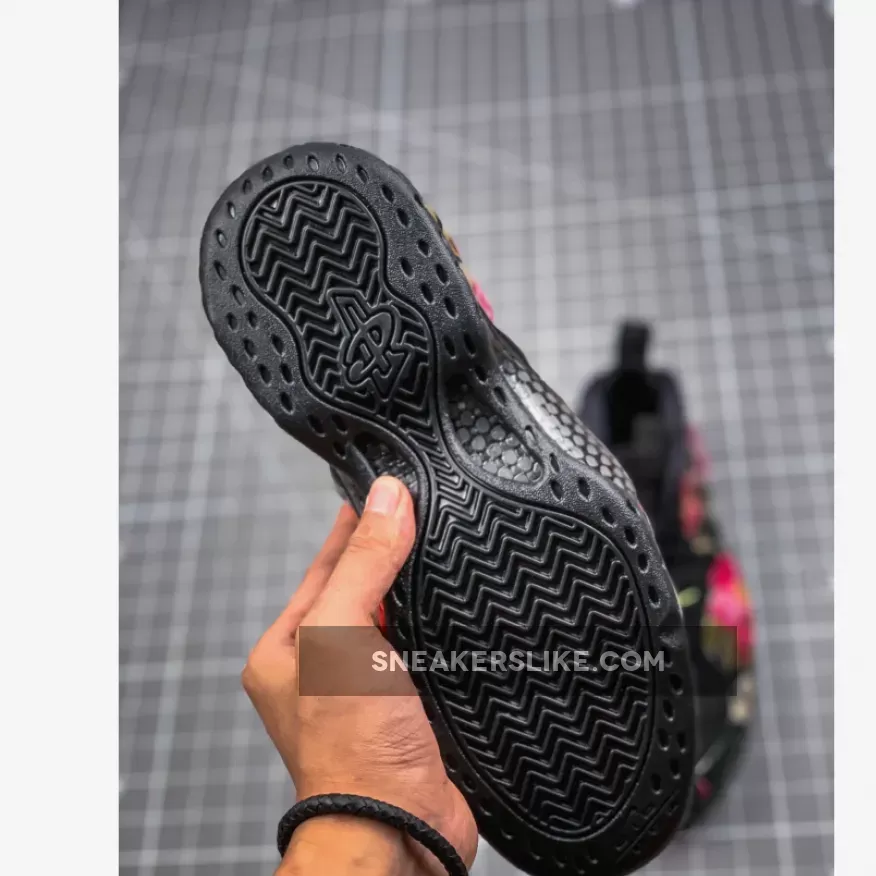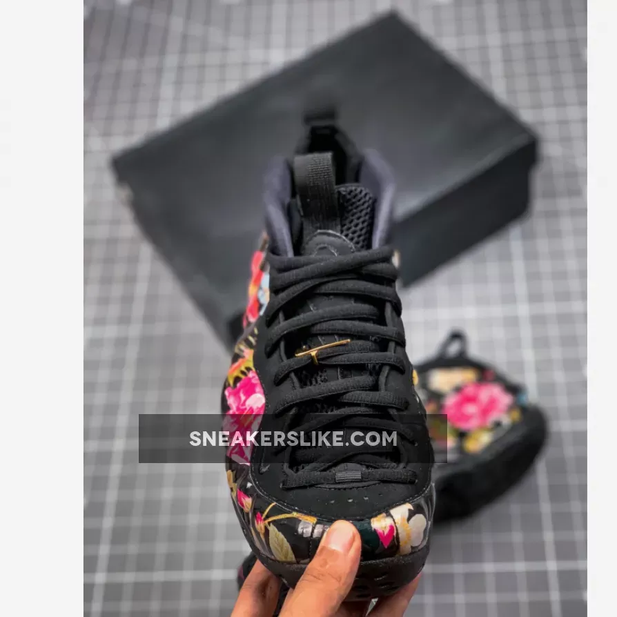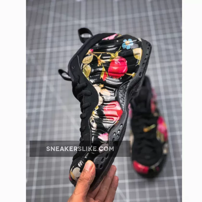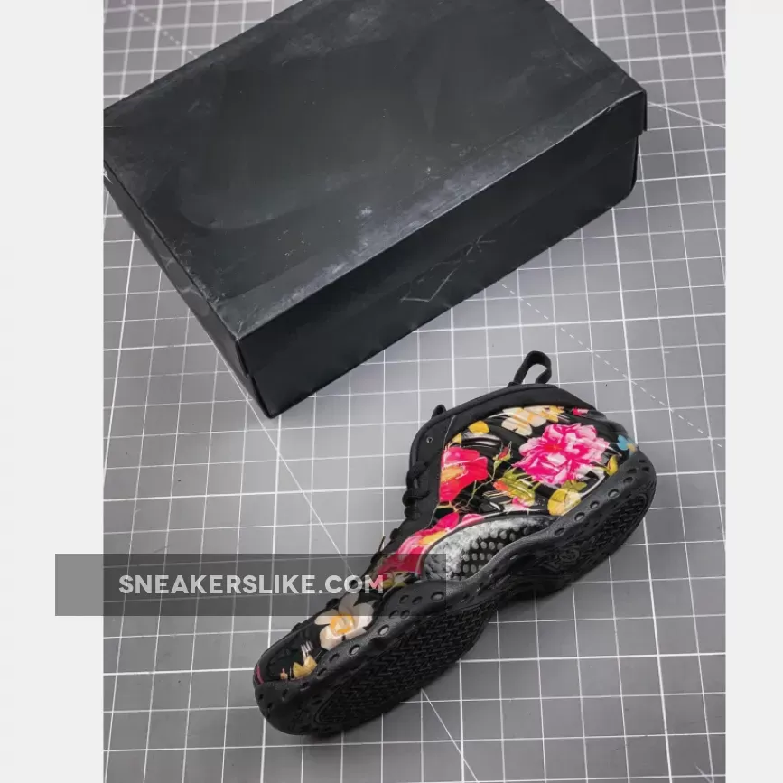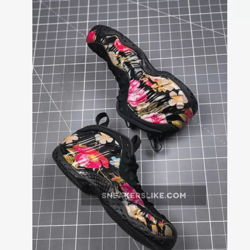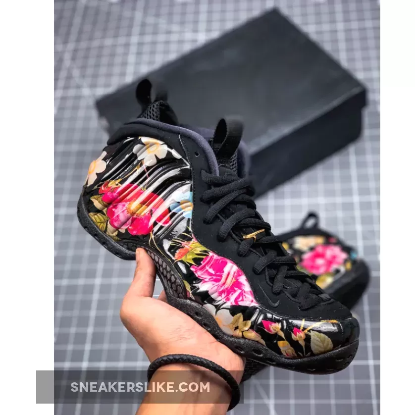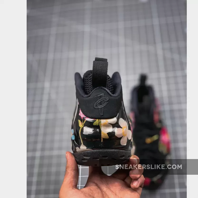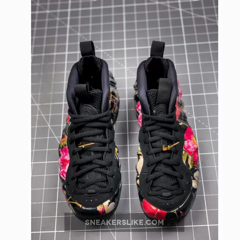 This Nike Air Foamposite One features an all-over floral pattern on its Foam shell with a Black upper and rubber sole. Completing the design is a Gold Swoosh lace dubrae adding for a nice luxurious touch.