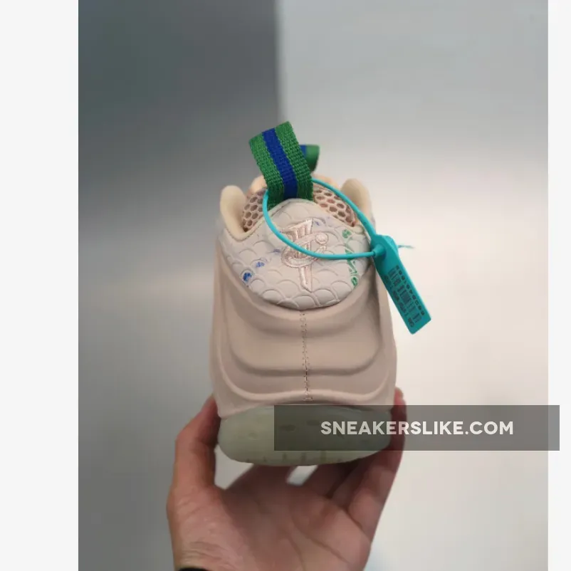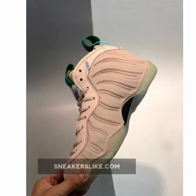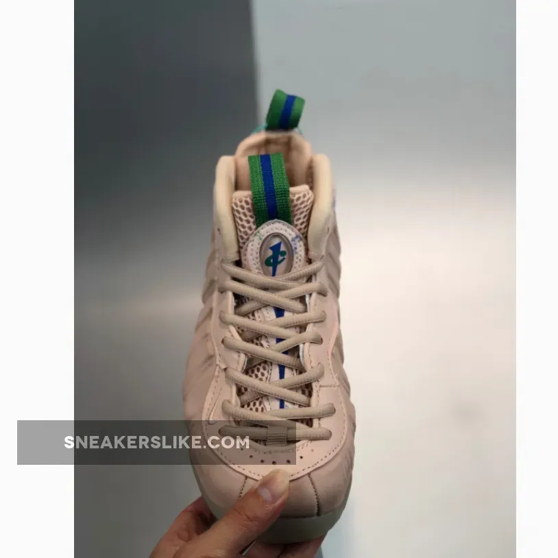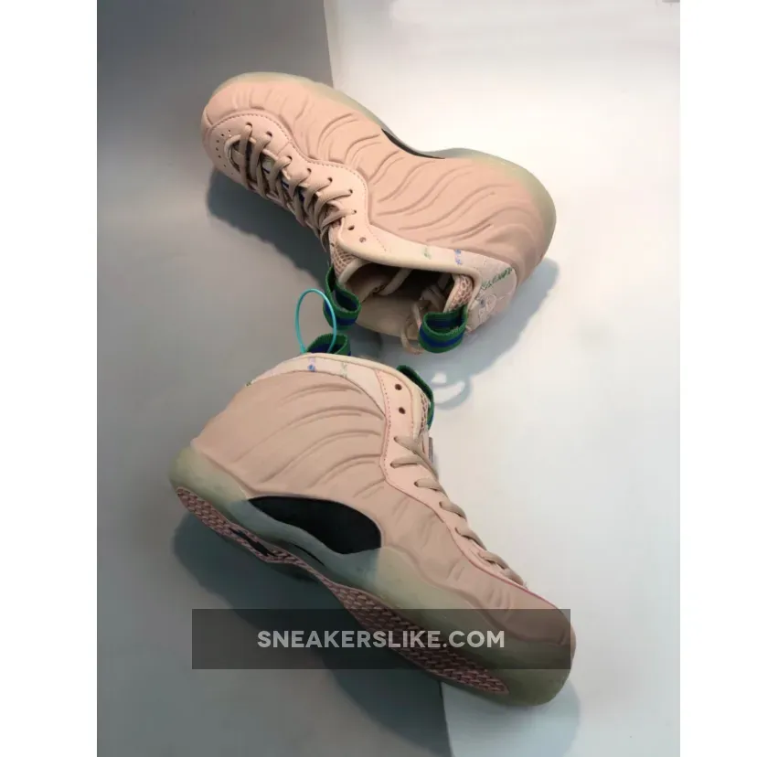 Dressed in a Particle Beige and Aloe Verde color scheme. This Nike Air Foamposite One comes in a full Beige Foam shell with detailing on the heels and tongues.