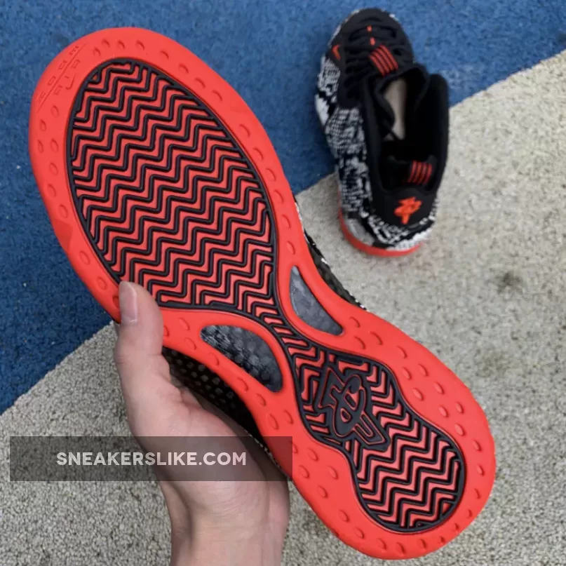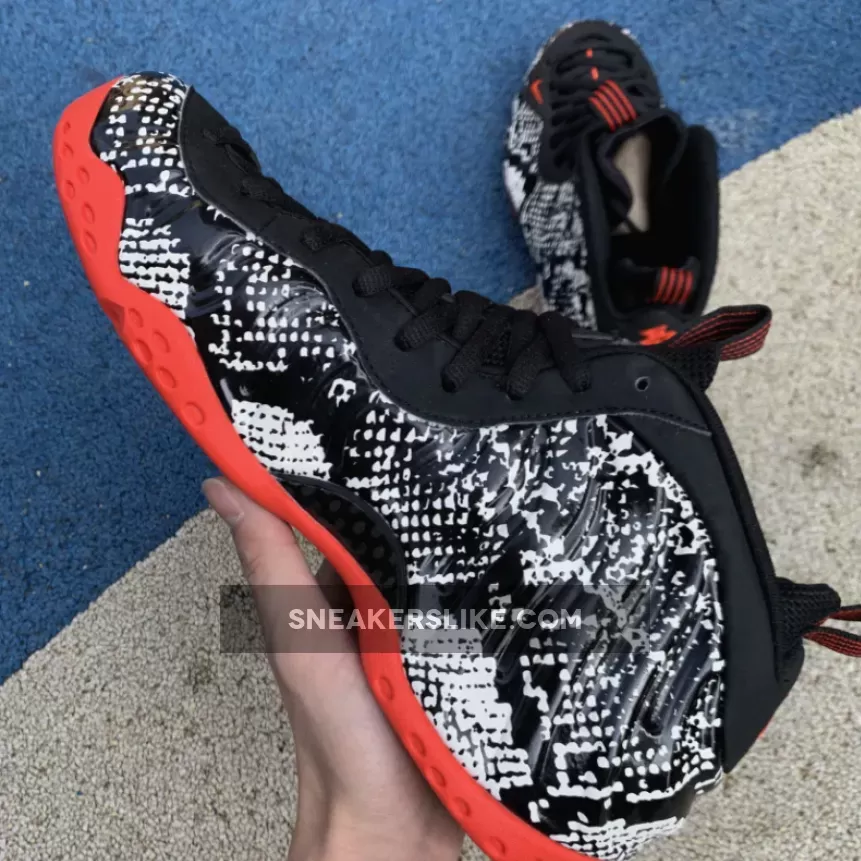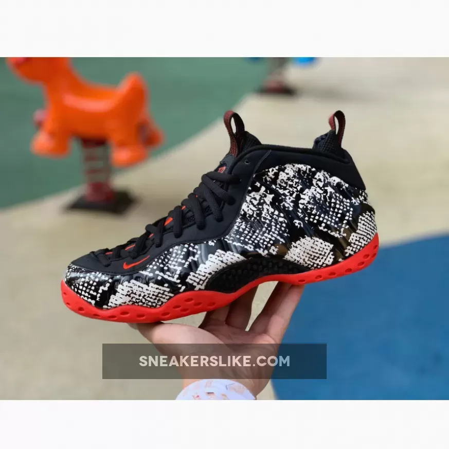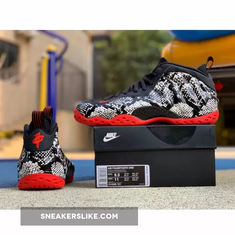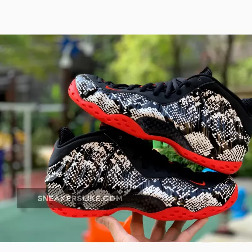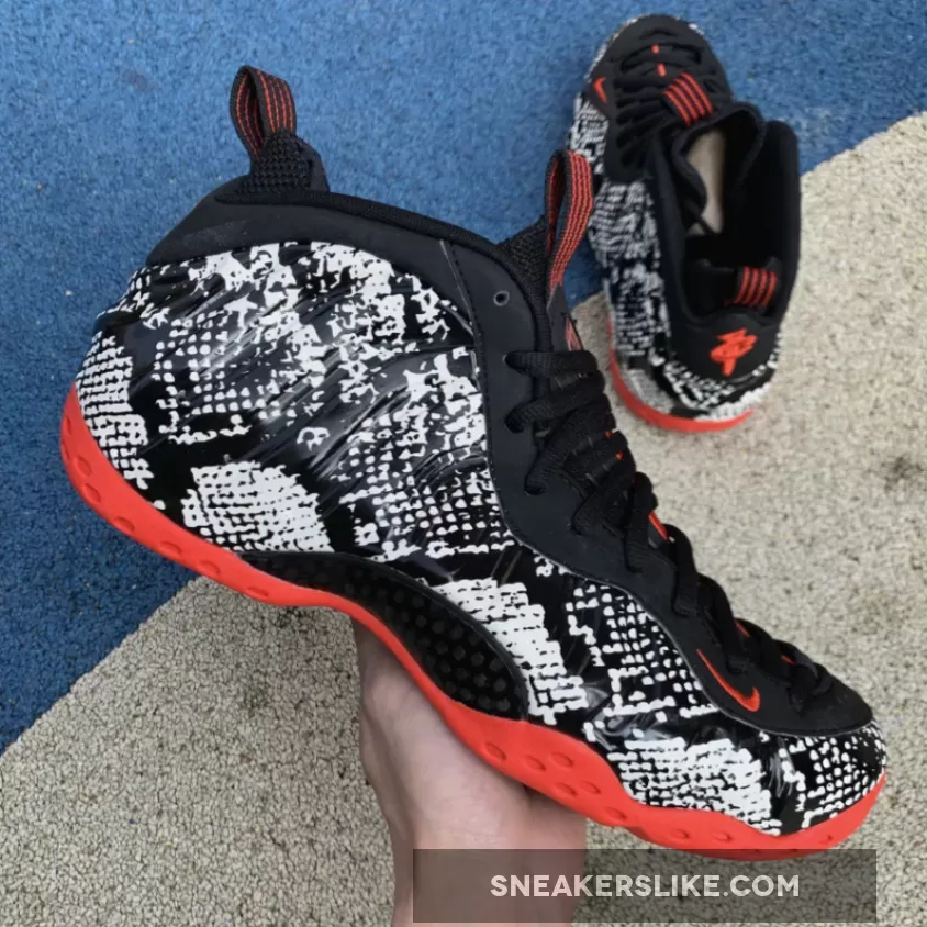 This Nike Air Foamposite One features a Sail, Black and Habanero Red color combination. Looking closer it features Black and White Snakeskin texture across the upper while Black leather lands on the collar, eyestay and toe box. Nike Air Foamposite One Snakeskin Color: Sail/Black-Habanero Red-Black Release Date: June 15, 2019 Style Number: 314996-101 Price: $220