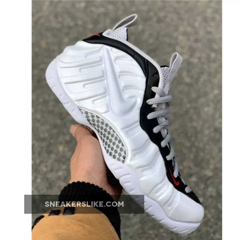 Dressed in a White, Black, and University Red color scheme. This Nike Air Foamposite Pro features a White Foam shell with a matching Swoosh on the sides paired with Black leather wrapping around the shoe.