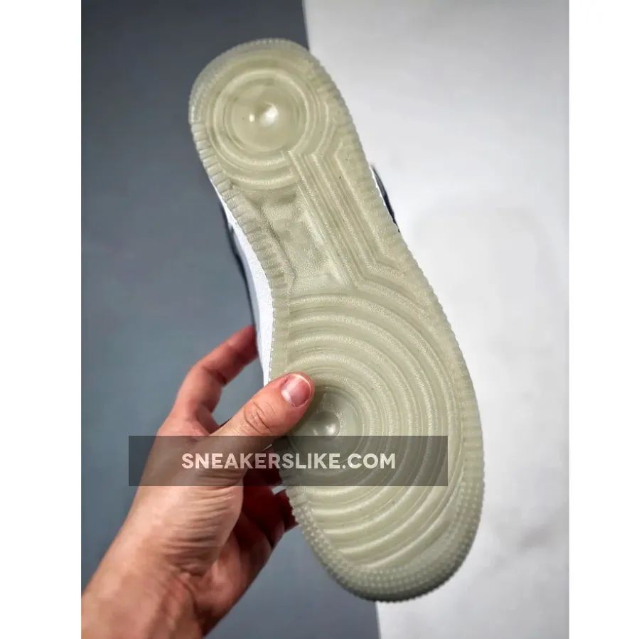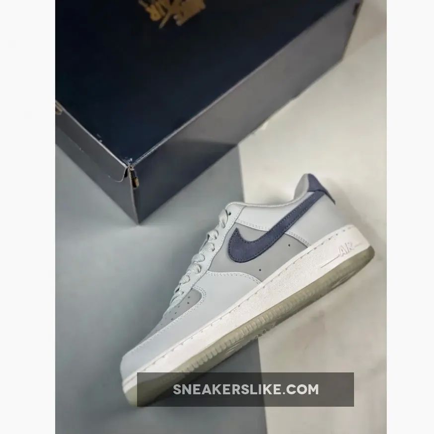 Underfoot, Kilgore’s made-for-basketball sole unit doesn’t detract from the upper. The “Air”-branded midsole favors an all-“White” finish that allows the top-half to revel in the spotlight. The grey Air Force 1, then, brings a semi-translucent, milky makeover to its radial traction. The design choice has appeared on other