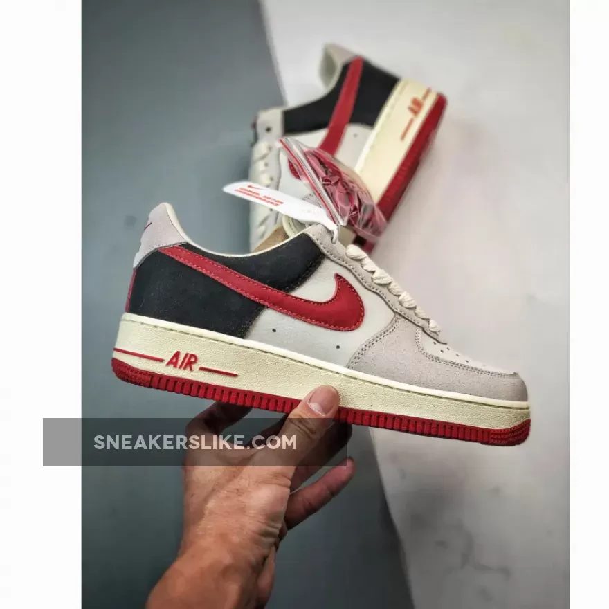 The Nike Air Force 1, a key highlight of the collection, showcases a color palette inspired by the city’s pre-fire architectural charm, featuring Summit White, Gym Red, and Coconut Milk hues. The fire’s origin story, rooted in folklore about Mrs. O’Leary’s cow accidentally knocking over a lantern, comes to life with a cow-print Swoosh on the medial side panel. The distressed leather and vintage-style midsole lend a time-worn aesthetic to the shoe.
