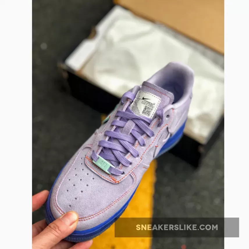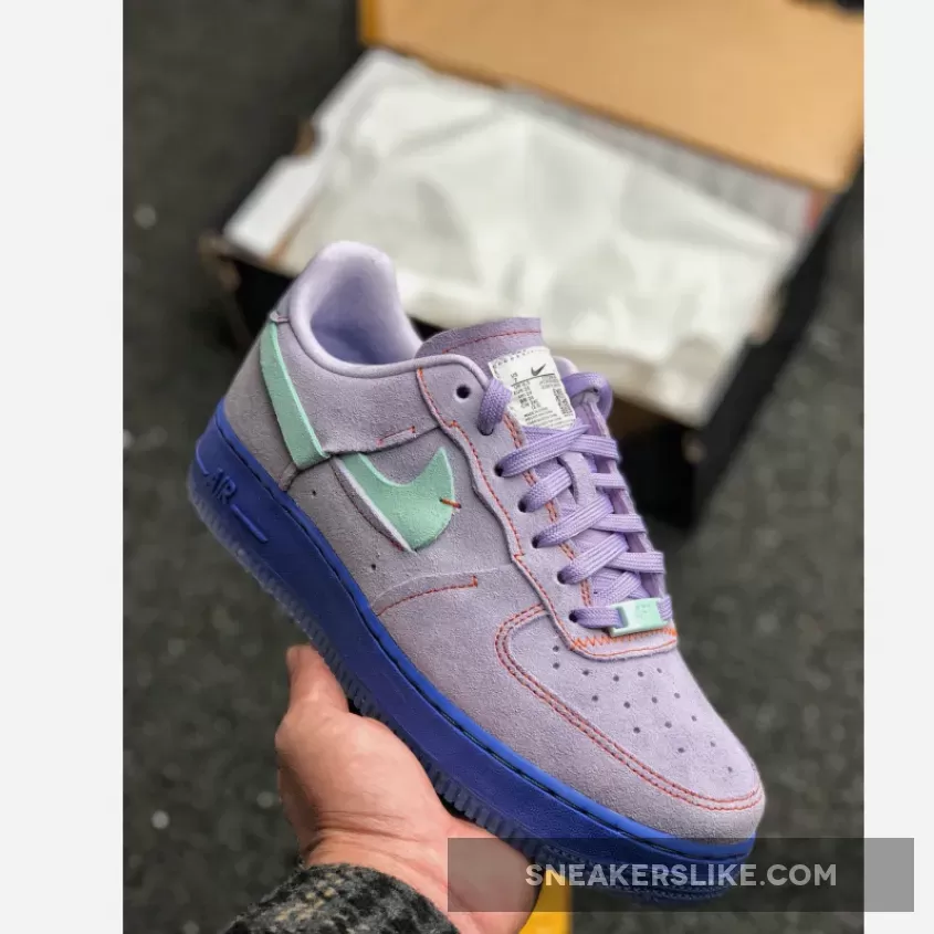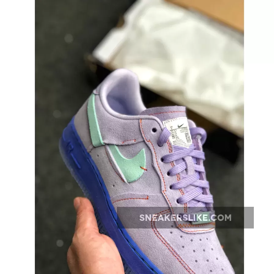 Nike continues to switch up and rework their most iconic streetwear silhouette, this time turning it inside out with mint green Swooshes across the lateral sidewalls. Soft purple suede dresses the upper of this purple and orange Air Force 1 Inside Out with a dark purple midsole below foot for a tonal touch.