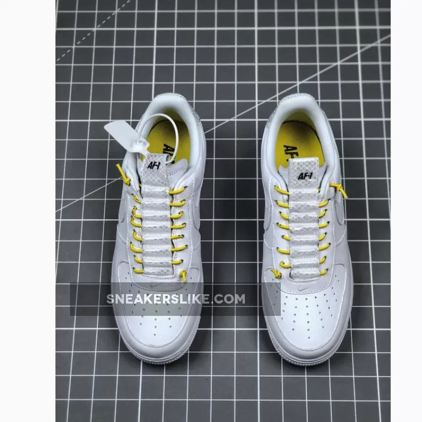 A hard hat isn’t included with this Air Force 1 Lux, but its inspiration comes directly from the high-vis safety elements of construction site workwear. Elastic cord laces and a tongue pull tab allow for easy on and off—a feature particularly useful during those winter months when thick gloves can cause you to fumble with traditional laces. The sneaker’s starkest contrast, however, is visible when it’s darkest. Reflective material—like you’d see on a construction vest—on the tongue webbing shines on against any light when the rest of the sneaker isn’t detectable. AF-1 branding at the top of the reflective webbing, however, ensures everyone knows what you’re really rocking: A re-imagined classic ready to stand out.