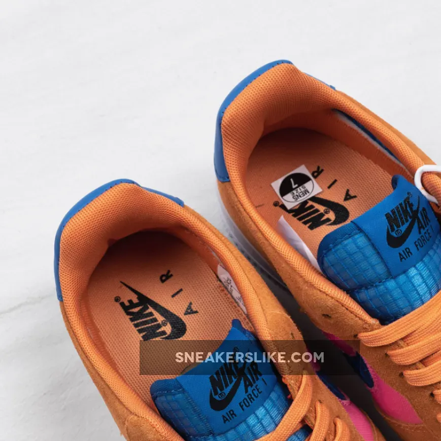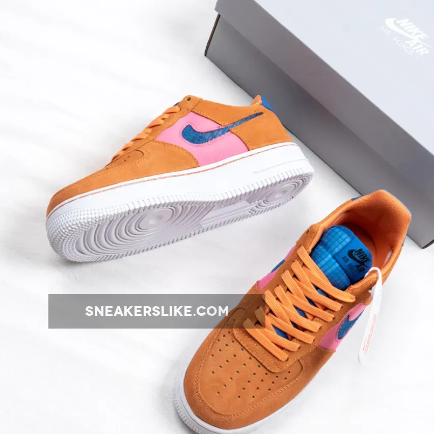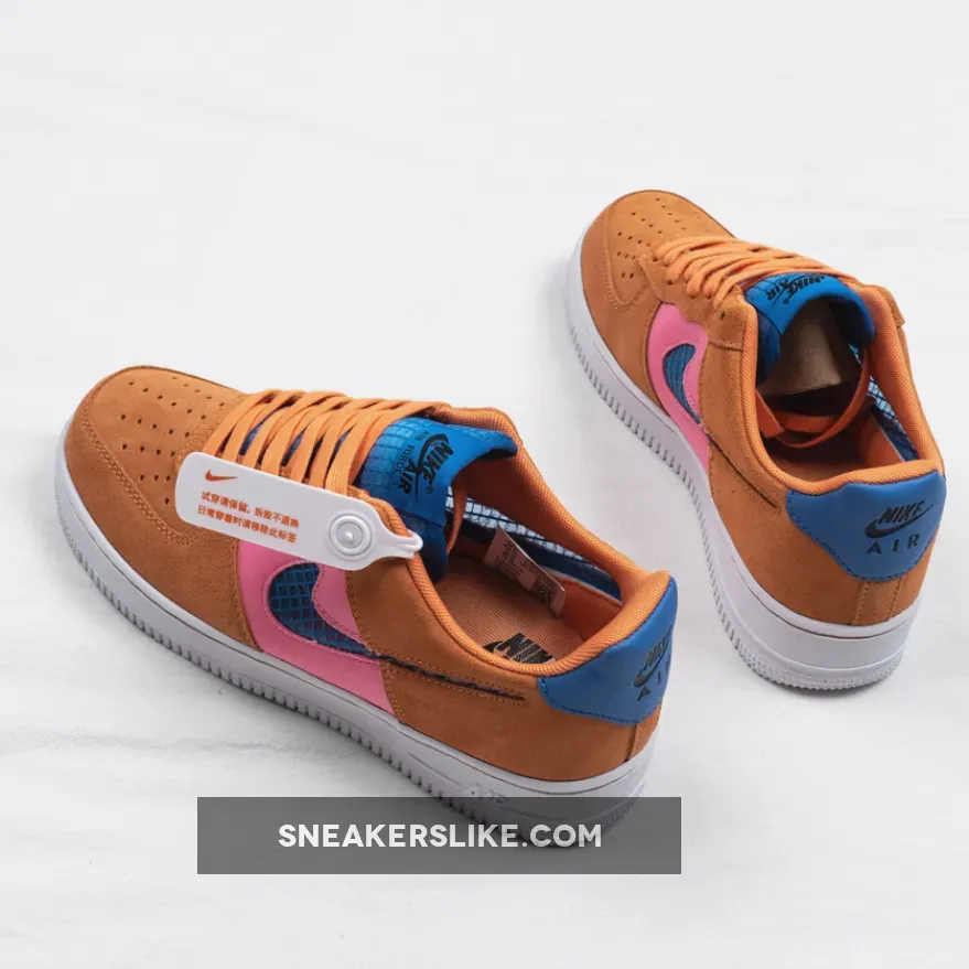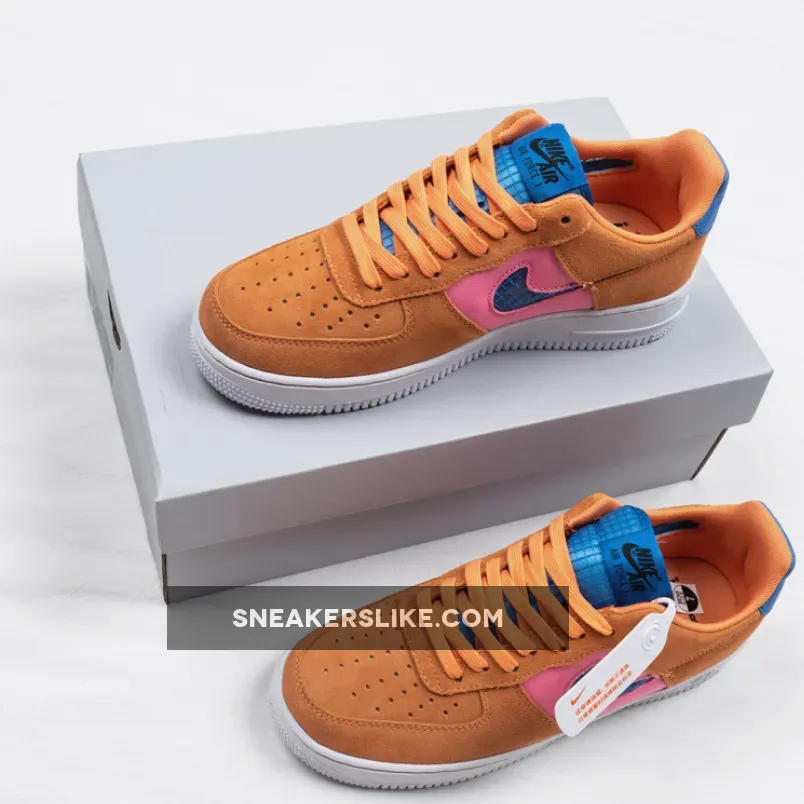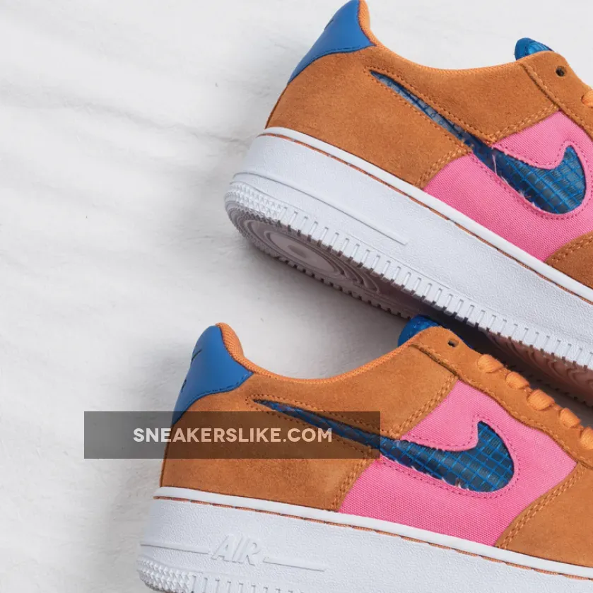The Air Force 1 Low‘s traditional leather panels have been replaced with colorful canvas and suede, taking on a similar ACG vibe, while the tongues and Swoosh insignias have been crafted from mesh. Additionally, the profile Swooshes are transparent, taking on a similar look of the Air Jordan 4 side windows. Finishing off is colorway option is exposed “Orange Trance” stitching on the signature white midsole.