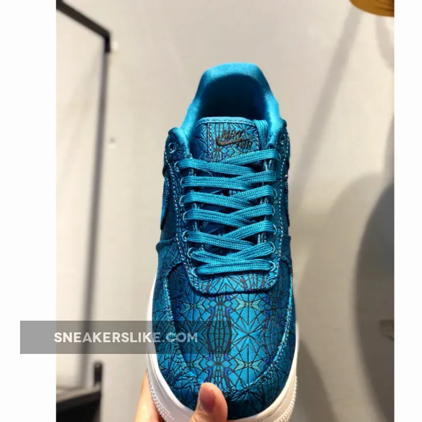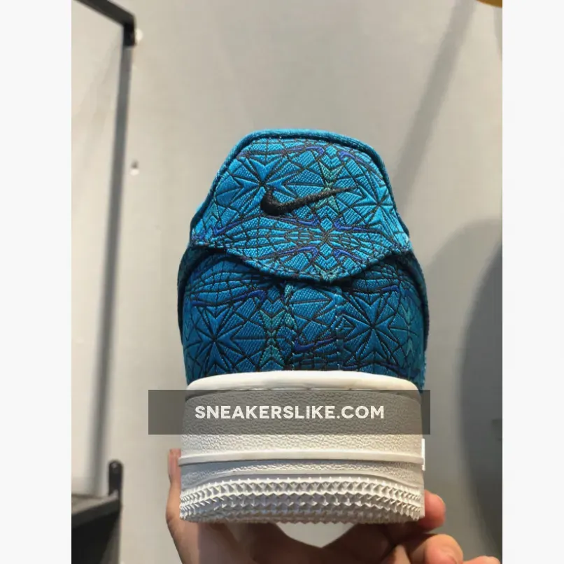 Dressed in a Green Abyss, Light Blue Fury, Spirit Teal, and Indigo Force color scheme. This Nike Air Force 1 is fully covered in a stained glass-like design that even overlaps onto the Swoosh logos.