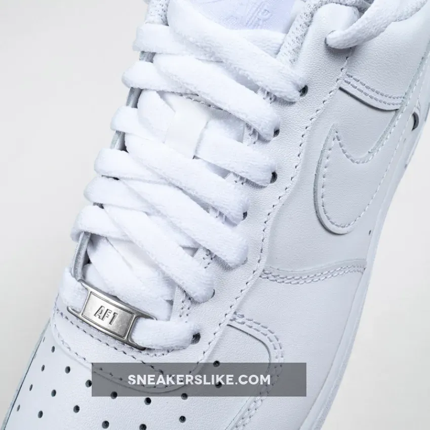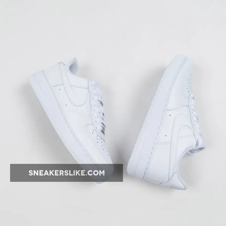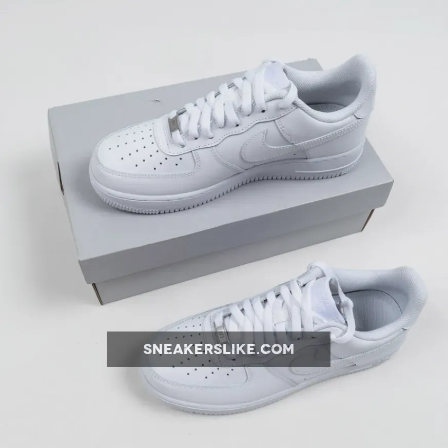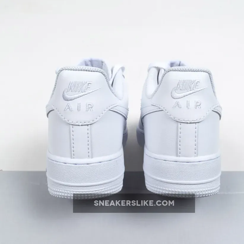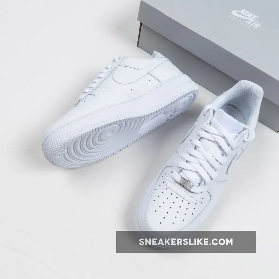 The Nike Air Force 1 Low is a modern take on the iconic white on white low top Air Force 1. Released in honor of the classic shoe’s 25th anniversary in 2007, the sneaker features an upgraded, crispier 10A full grain leather white upper with a matching white Air-cushioned rubber sole.