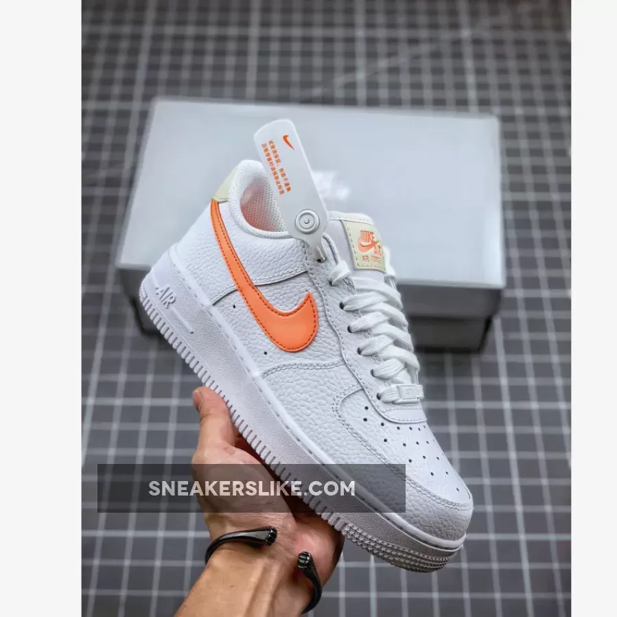 Arriving with an all-white leather upper, the women’s sneaker is accentuated with a bright orange shade on the Swoosh and tongue tag. You can sport this pair with your daily casual outfit for an effortless look this summer.
