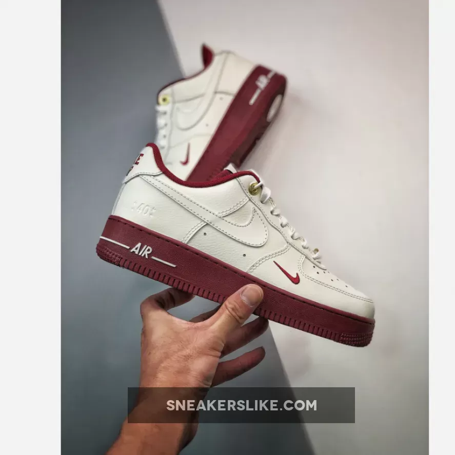 Joining the festivities is this special edition Nike Air Force 1 Low which features a creamy white and “Team Red” color scheme. The former dresses the silhouette’s upper, overlays, tongue, laces, and Swooshes, while the latter accents the liner, midsole, and mini Swoosh details. Further nodding to the model’s 40th anniversary are the “1”-branded tongue tags, “82-22” insoles, debossing on the lateral ankle, and Metallic Gold dubraes and upper eyelets. Lastly, retro “Nike Air” branding and Kilgore’s signature can be found behind the tongue tags.