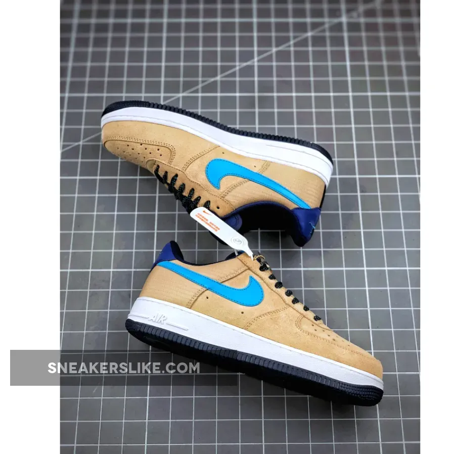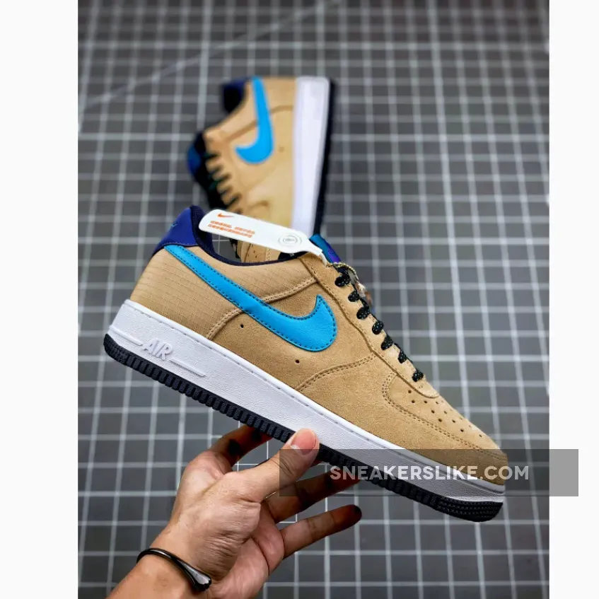 . The Air Force 1, fittingly, comprises a strong majority of this collection as its third entry plays off the cream bases of one of its debuting few. These neutral shades seat much of the upper in either suede or ripstop synthetic, leaving the Swoosh and adjacent branding to infuse color with a mix of cool tones: “Blue Fury” dyes the check, dark purples hit the heel tab, and darkened teals thread the warped “Nike Air” embroidery
