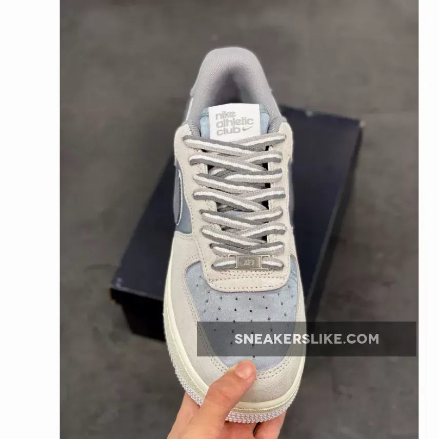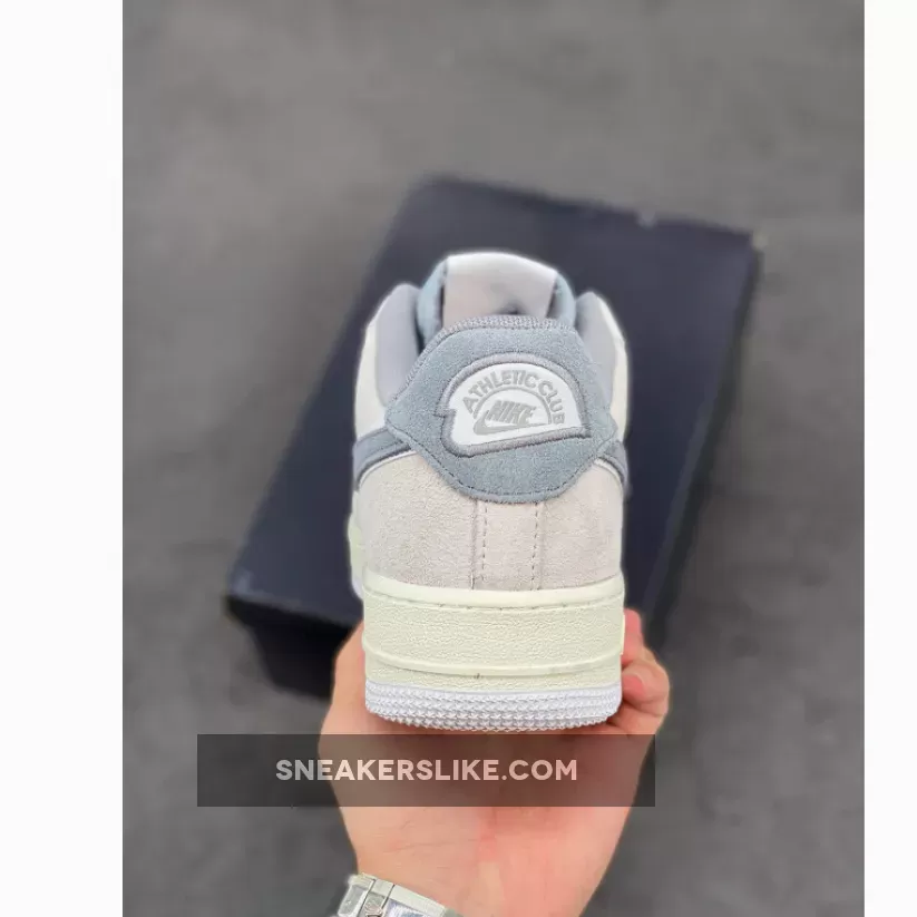 Nike has always been known for inventing fictional clubs and teams, like the Roswell Rayguns. The Bruce Kilgore-designed Nike Air Force 1 is no exception with its “Athletic Club” collection. Its latest edition is the Nike Air Force 1 Athletic Club Grey Silver. A perforated silver grey forms the base and peeks out of the toe box and the mid-panel. A very light grey suede covers the toe cap, mudguard, heel counter and the eye stays. Retro Nike Athletic Club branding appears in light grey on the tongue tab and white on the grey insole. A silver Air 1 deubré finishes the look. Use our Air Force 1 size guide to know how they fit too.