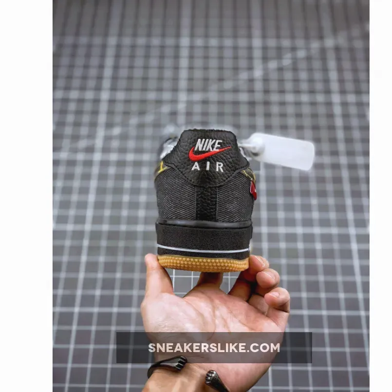 The Nike Air Force 1 Low Remix Pack Black Denim marks another collaboration from Foot Locker and Nike as part of their Remix Pack paying homage to 90s street style.The low-top Air Force 1 sneakers are constructed from a washed black denim and feature a black and yellow camouflage print on the side panel Swooshes. The collar boasts a plaid inner lining and pops of red accents appear at the lateral forefoot and heel.The combination of plaid and faded black denim are nicely contrasted with the subtle yellow stitching across the AF1’s iconic panels and camo yellow hues on the Swooshes. Finishing off the Nike Air Force 1 Low Remix Pack Black Denim is the black leather heel tab with the stitched Nike Air logo. The Nike Air Force 1 Camo Denim has a release date of 22 August and will be available at Footlocker.