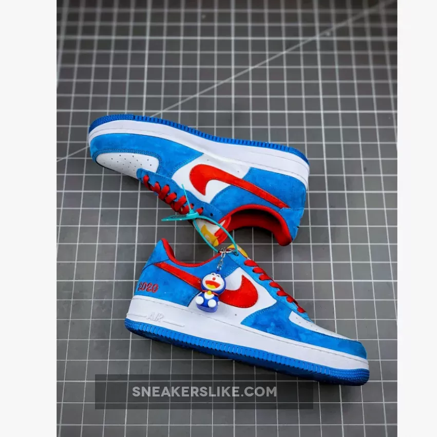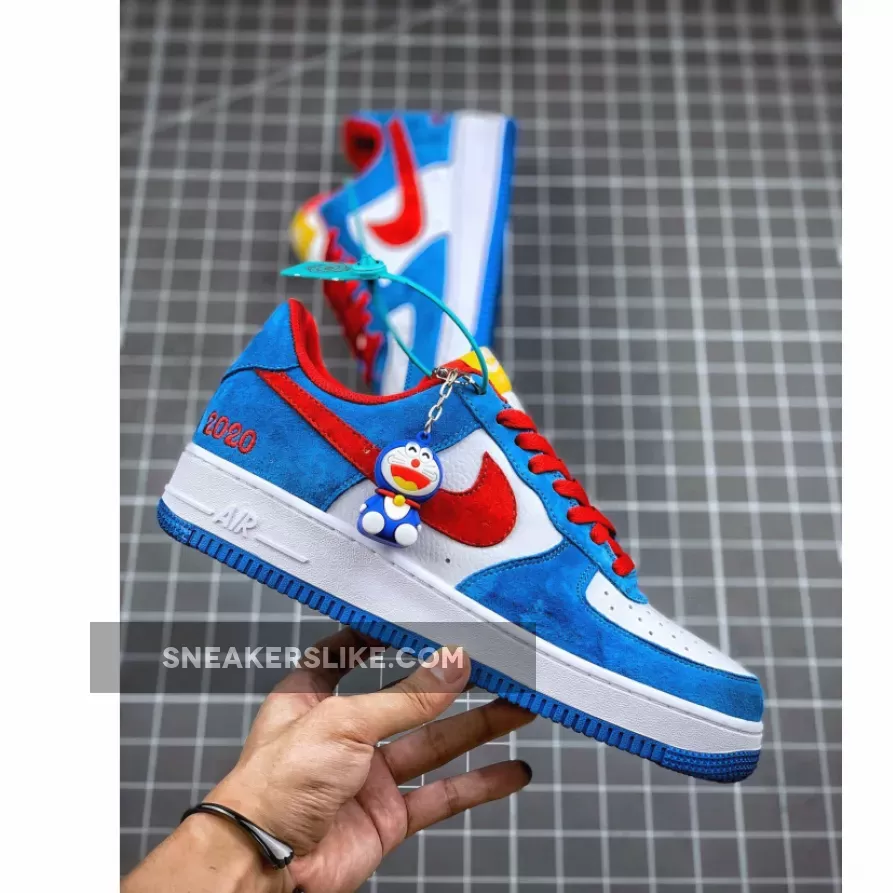 Dressed in a Light Photo Blue, Speed Yellow, and University Red color scheme. This offering of the af1 comes dressed in Doraemon’s color blocking. It features a White leather base with Blue suede overlays paired with a Red Swoosh and matching laces.