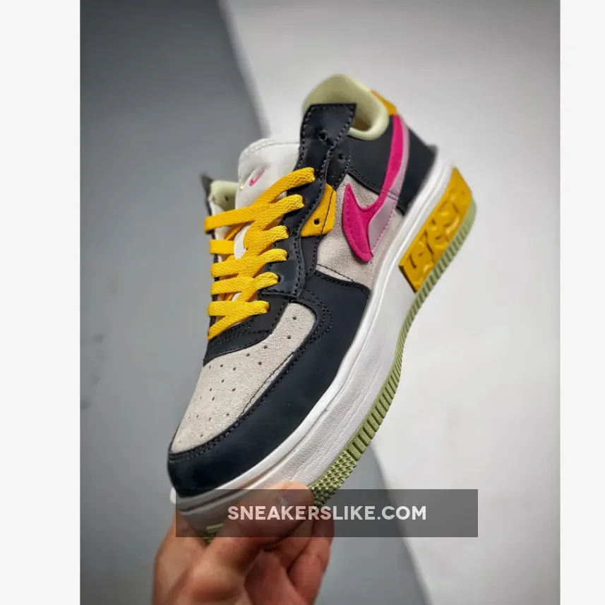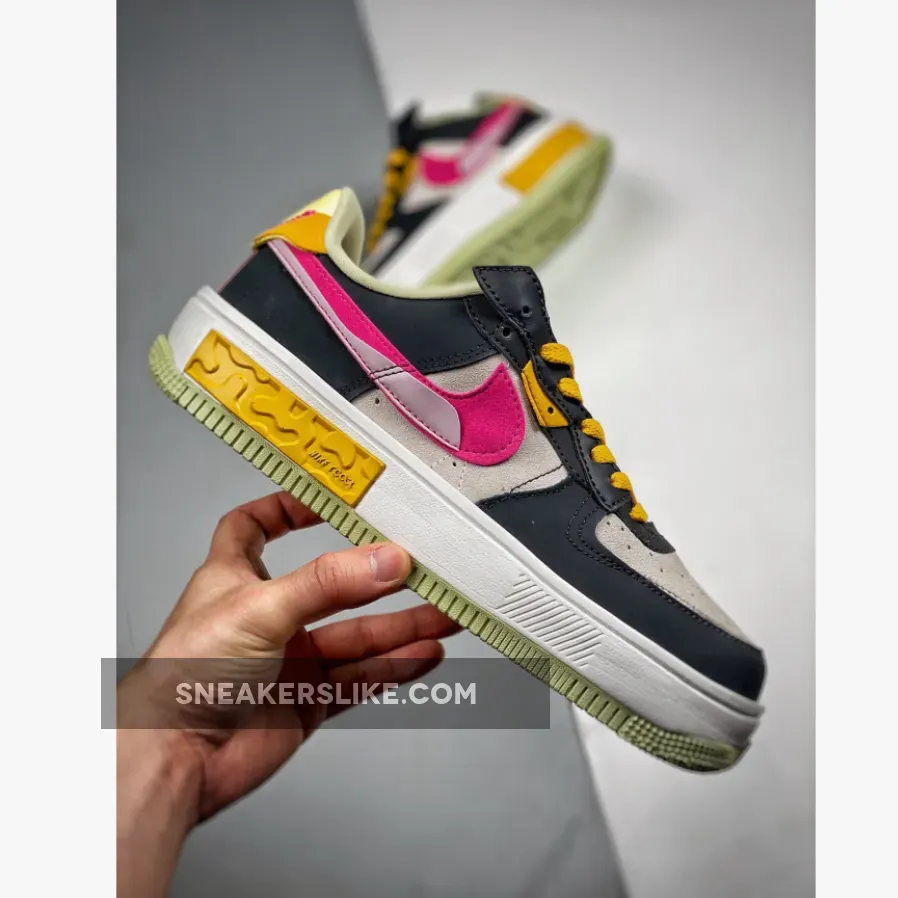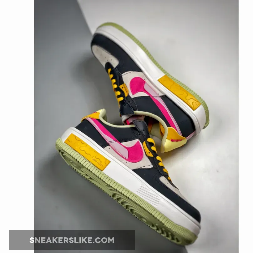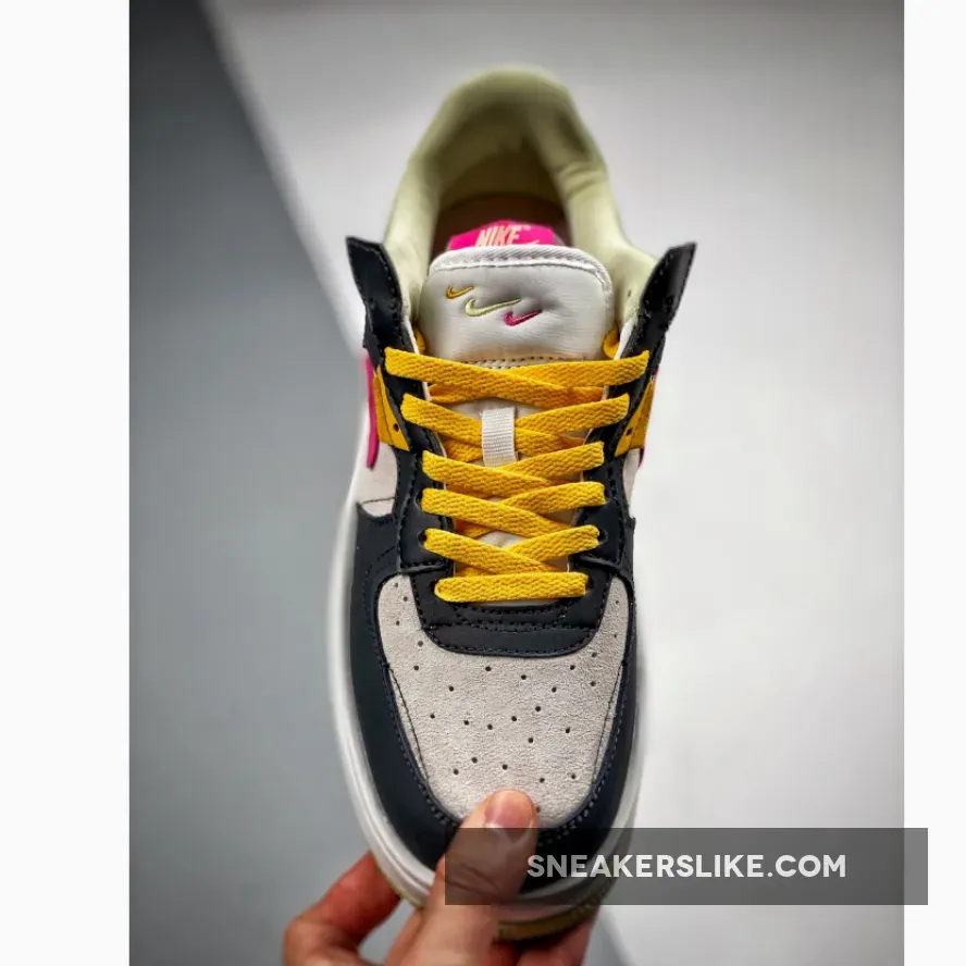 The Nike Air Force 1 Fontanka dresses up in playful colours and a deconstructed look with the new Nike Air Force 1 Fontanka Pink Prime. This AF1 features an “Off-Noir”, “Summit White” and “Pink Prime” colourway. The base of the upper is Summit White suede showing on the toe box and the quarter. The overlays, also in suede, on the toe cap, mudguard, the first layer of the stacked eyestay panel and the foxing are in “Off Noir”. The striking stacked signature profile Swooshes on both the medial and lateral sides of the shoe feature“Pink Prime” with a flannel-looking finish layered over by a lavender-coloured patent patch. Pops of golden yellow and light yellow appear on the eyestay panel, the laces and the unbranded heel tab. The stacked tongue tab shows off three mini Swooshes in golden yellow, Summit White and Pink Prime.