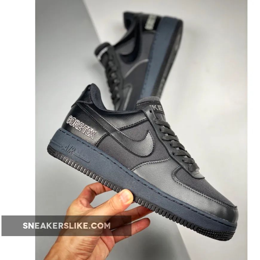this Nike Air Force 1 Low comes dressed in an Anthracite, Black and Barely Grey color combination. Constructed with Gore-Tex waterproof materials throughout, mesh then lands on the base while leather is applied to the overlays.