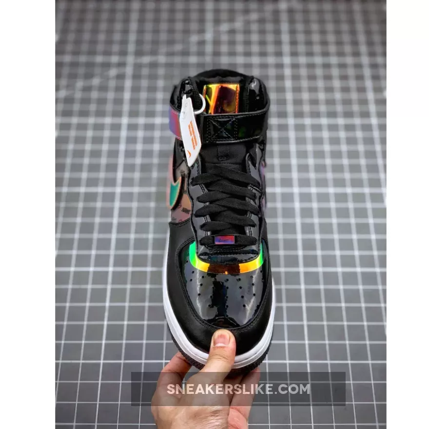 This Nike Air Force 1 High utilizes different materials which includes patent leather, velcro Swoosh logos, smooth leather and iridescent accents. Highlighting this pair is ‘Have A Good Game’ on the lateral side by the heel.