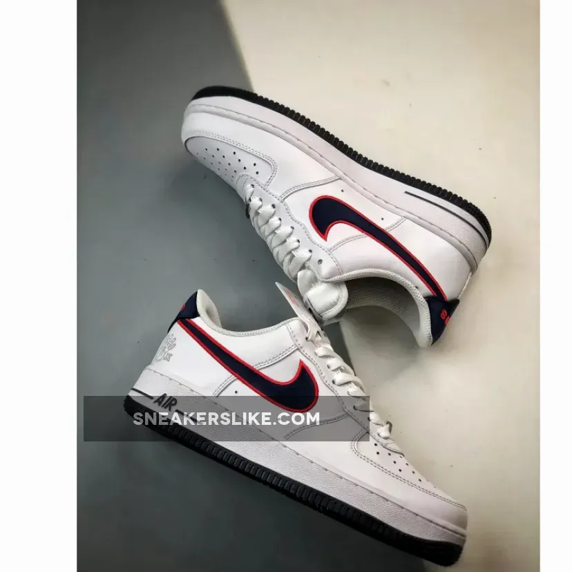 Nike celebrates the Houston Comets’ 4-peat championship run in the WNBA with this AF1 Low rendition. Appreciate greatness in the Nike Air Force 1 Low “Houston Comets Four-Peat”.This special Nike Air Force 1 colourway honours the iconic 4-peat of the Houston Comets with multiple details. To start, the shoe comes in a clean white leather construction with a navy Swoosh and red embroidered outline. The navy heel panel presents the characters ‘97, ‘98, ‘99, and ‘00 as a reference to the four championship years. An embroidered four-finger logo on the lateral rear completes the triumphant colourway.