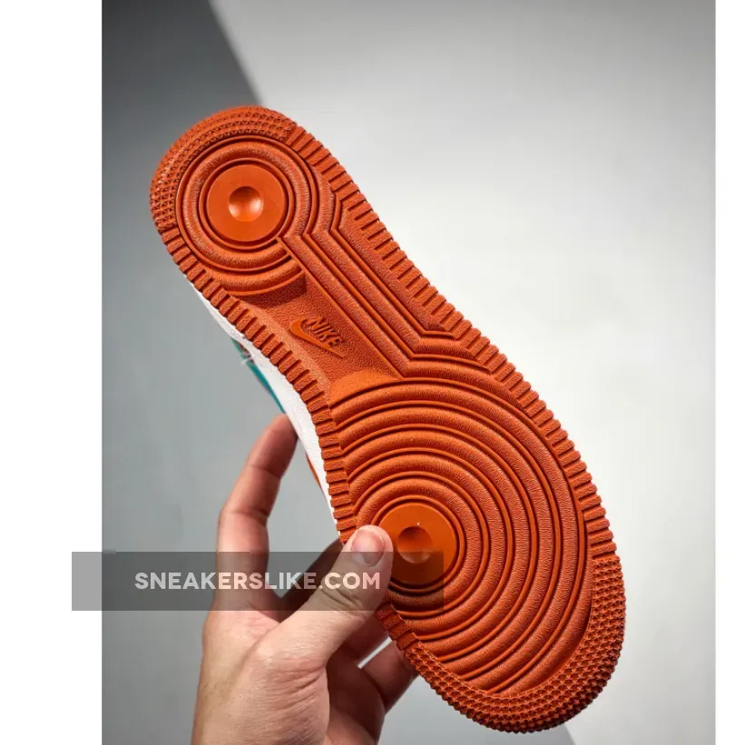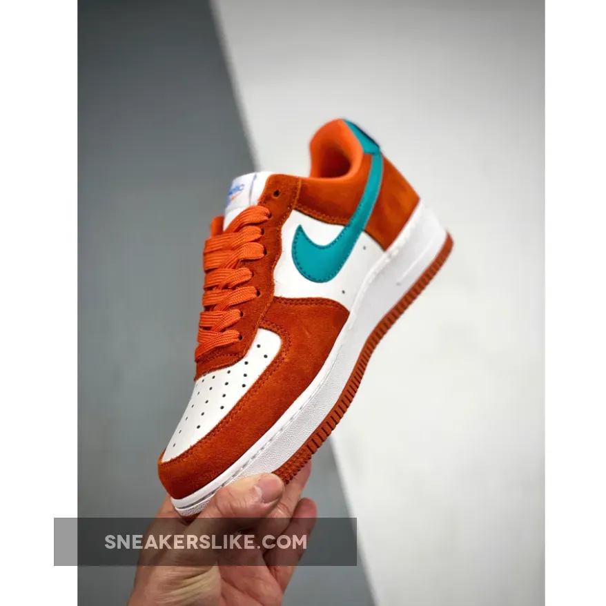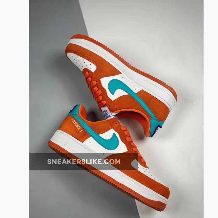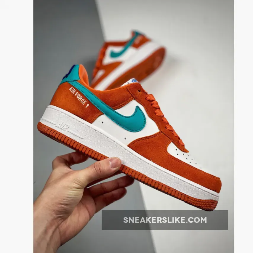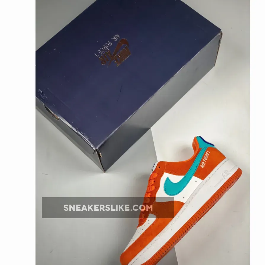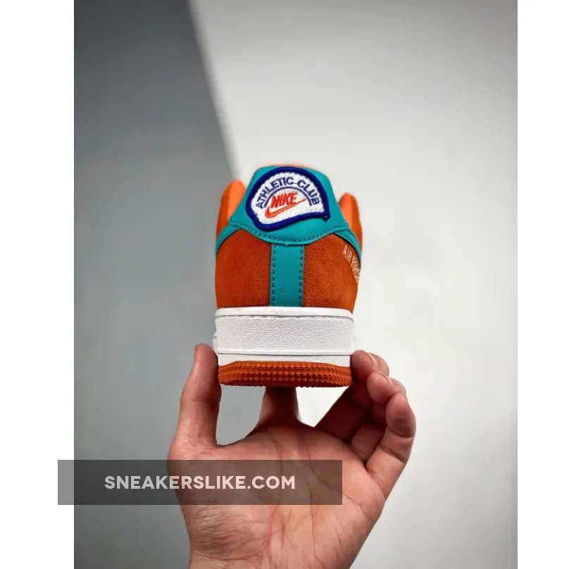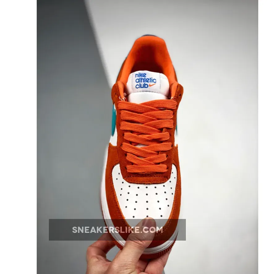 This offering of the Nike Air Force 1 Low features a White leather base with Orange suede overlays highlighted with Teal leather Swooshes and heels. A retro-inspired Nike Athletic Club tongue tags and insoles with a special sew-on patch on the heels completes the design.