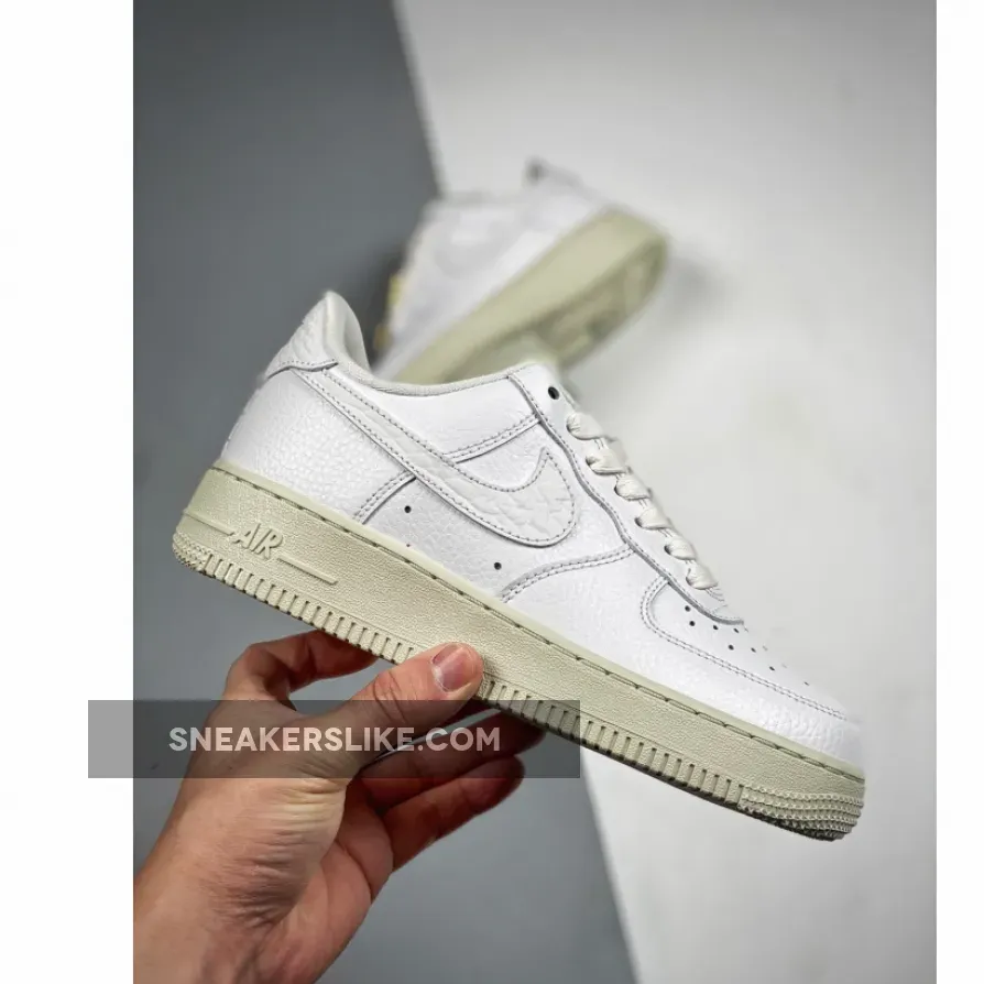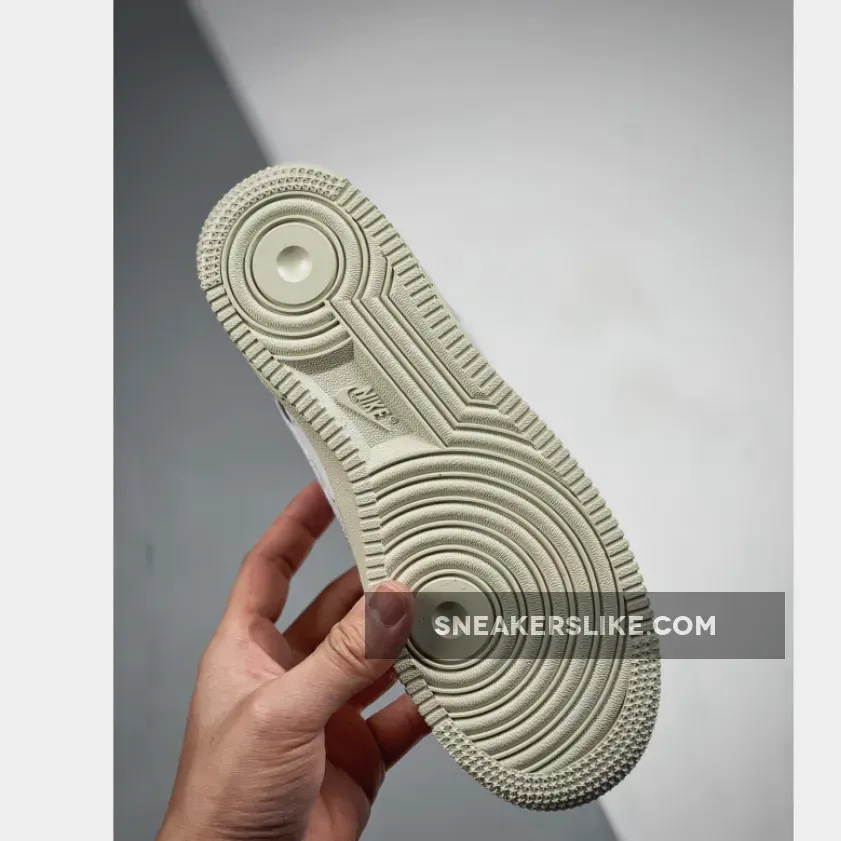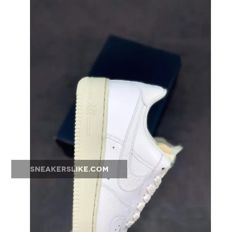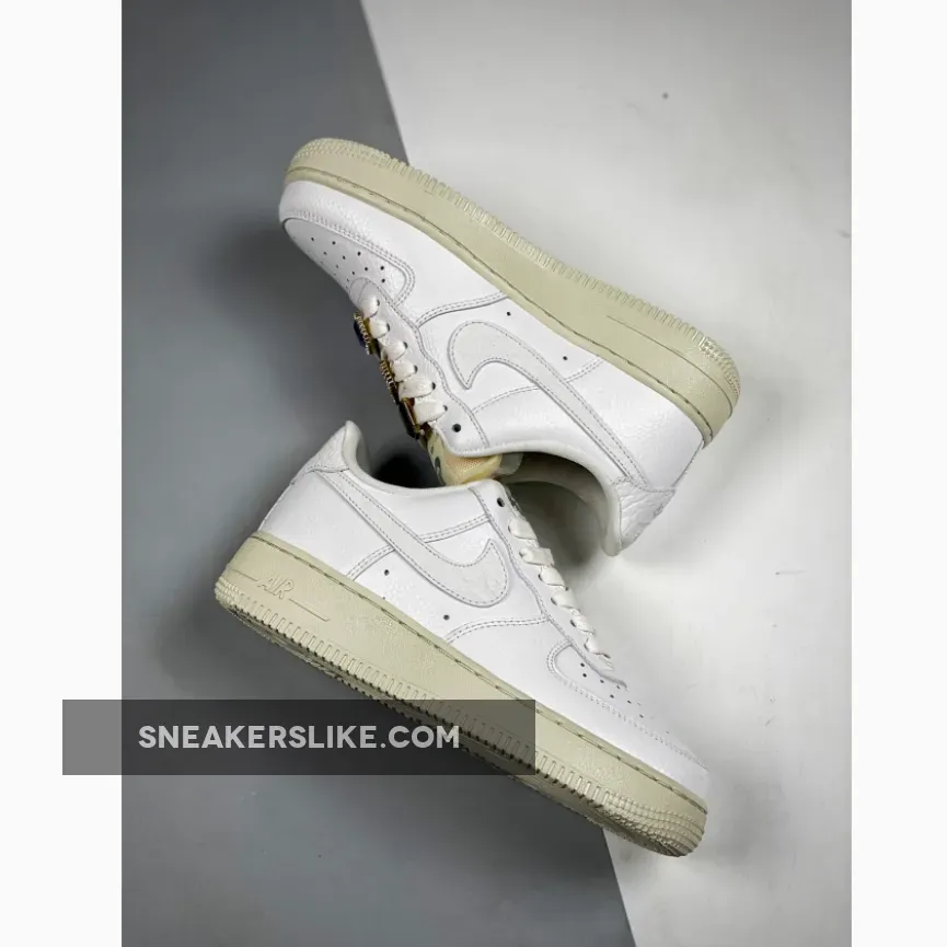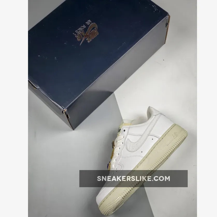 This Air Force 1 continues this relatively long-running series, though with subtle tweaks to the established formula. White leathers still take the lead, however, constructing much of the upper against the footbed of a slightly aged, moderately yellowed tooling and the mesh of the multi-layered tongue. Tumbled Swooshes also obstruct the norm a fair bit in tandem with the gold-backed amethyst and amber jewels.
