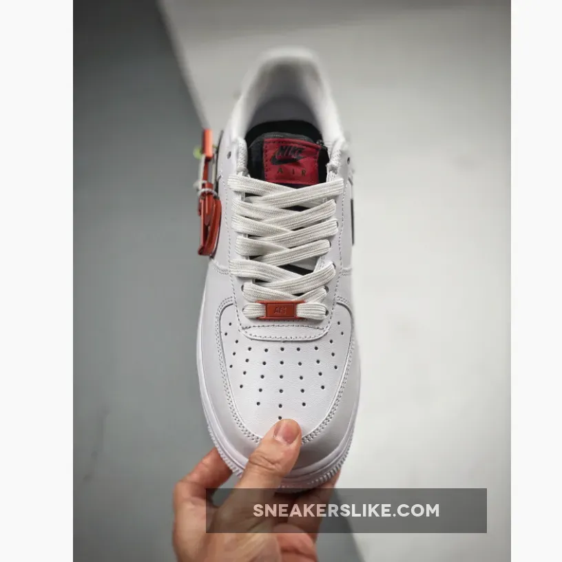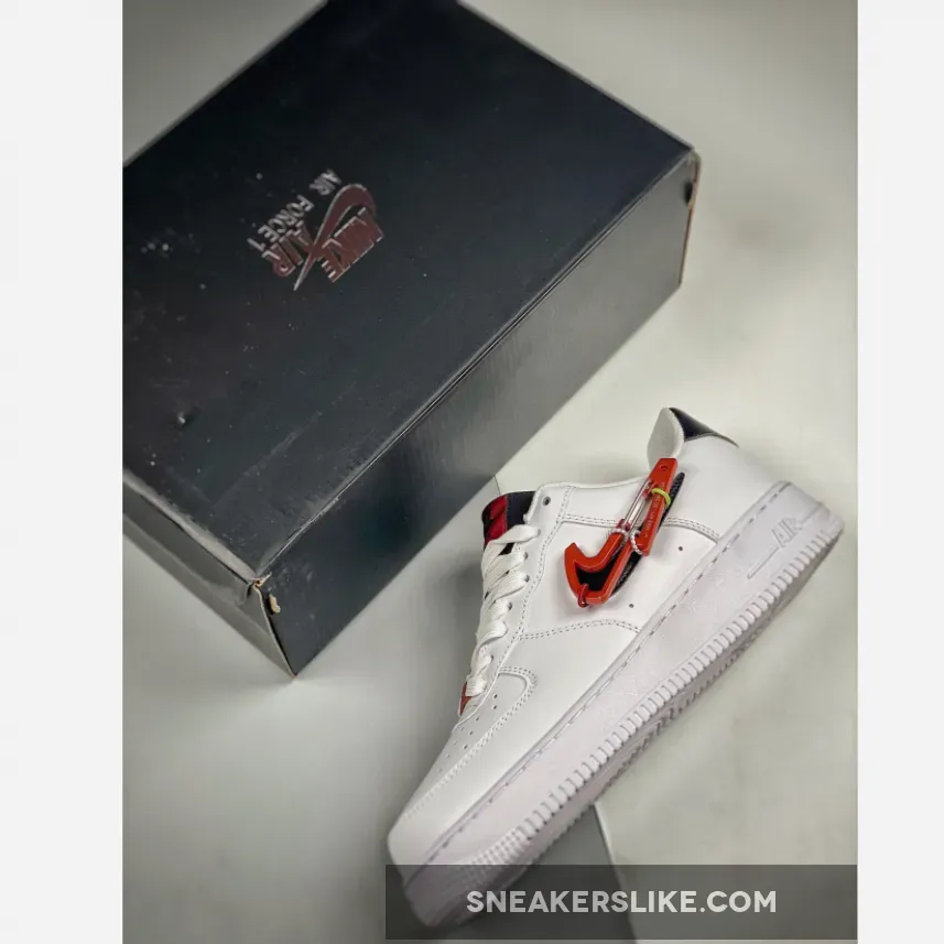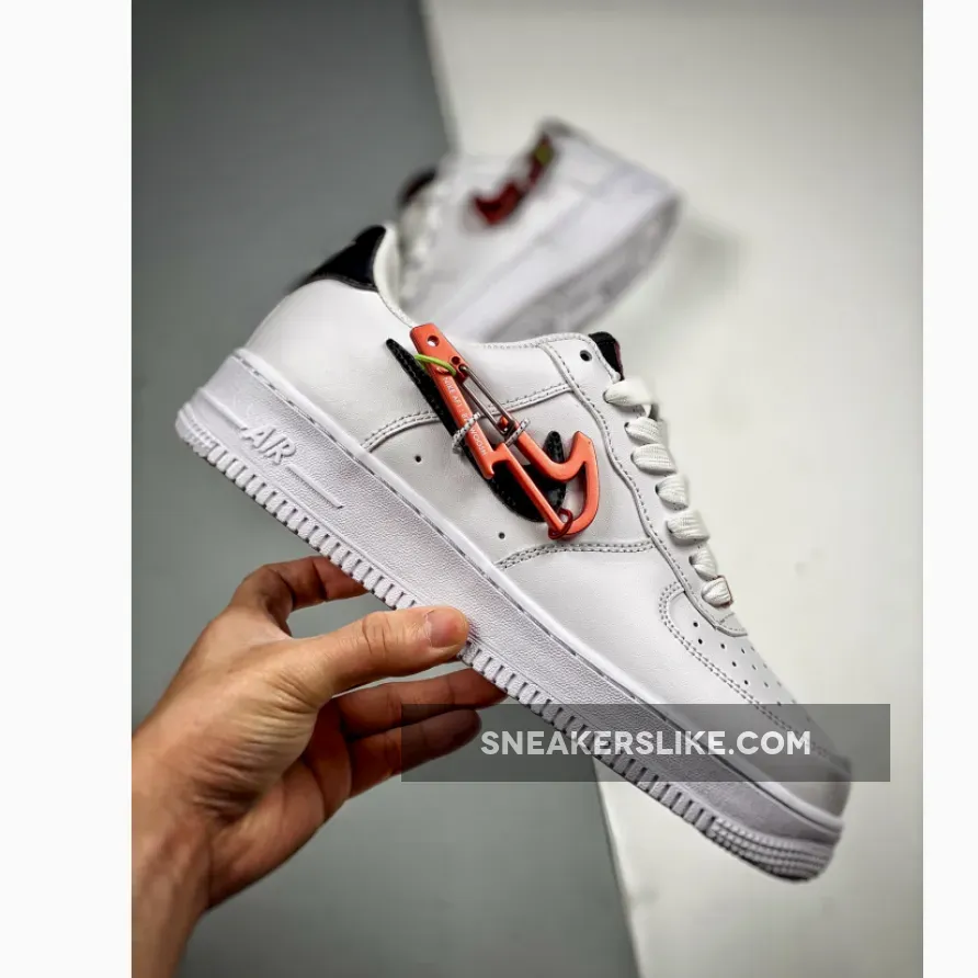 Take your style to the next level with the Nike Air Force 1 Low Carabiner Swoosh White. This revamped AF1 gets a utilitarian aesthetic makeover with the addition of a carabiner detail on top of the traditional Swooshes. It also features a black modern zip-pocket tongue that contrasts the Air Force 1’s classic smooth colourless leather upper. Furthering the dynamic design of this pair are the bright orange lace dubraes.