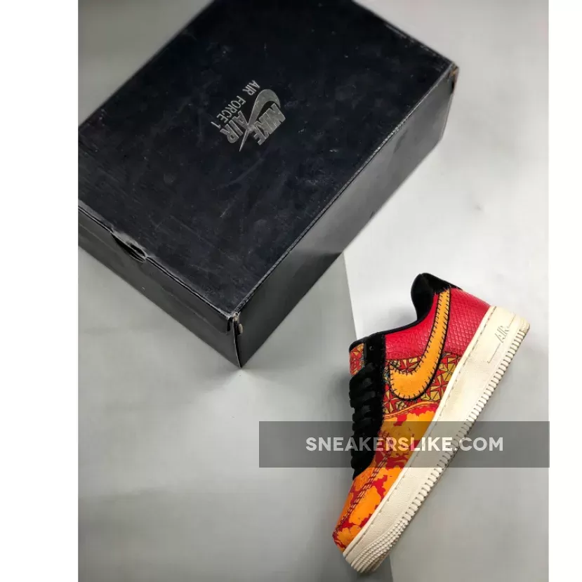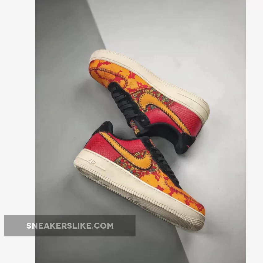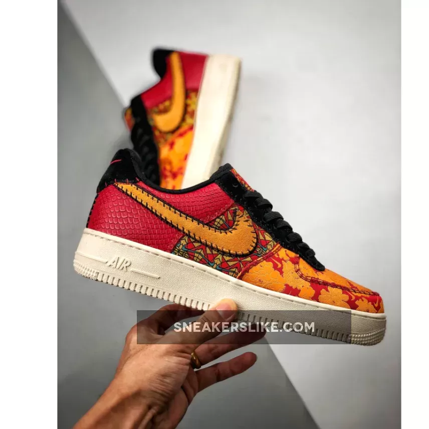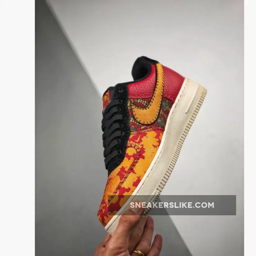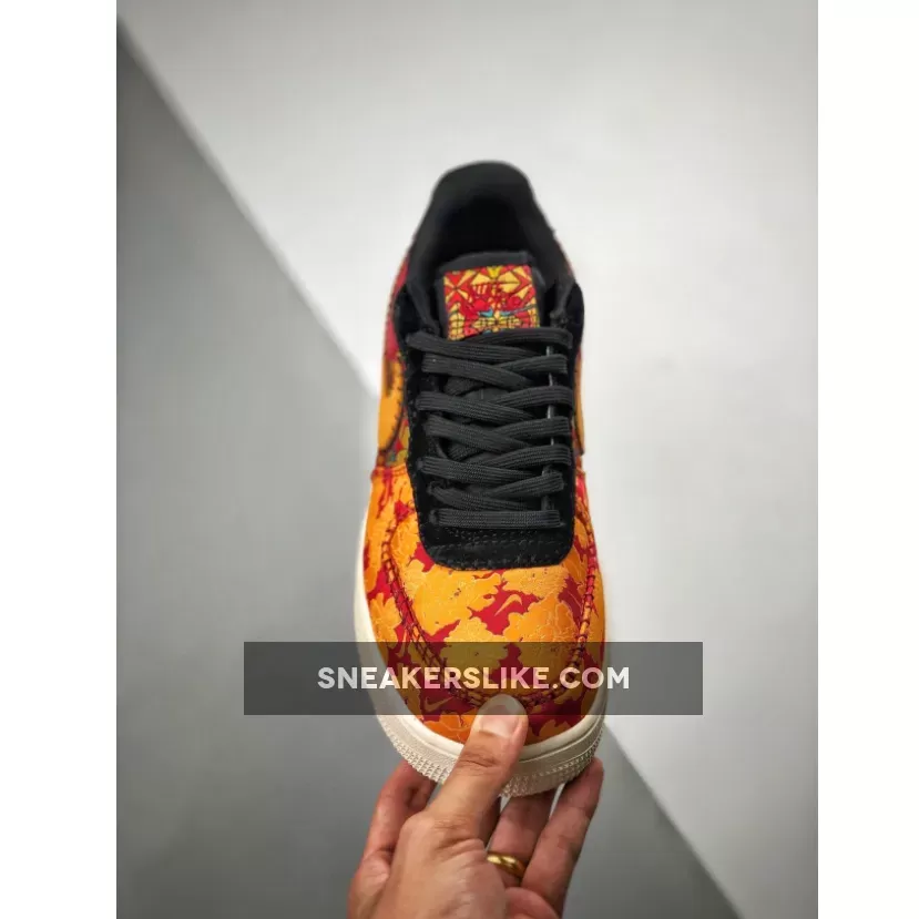 This celebrated Nike Air Force 1 Low features Chinese-themed graphics and prints covering its entire upper with a stitched Swoosh logo and reptile textured on the heel area. Other details includes branded tongue labels atop a Sail White rubber AF1 rubber sole.