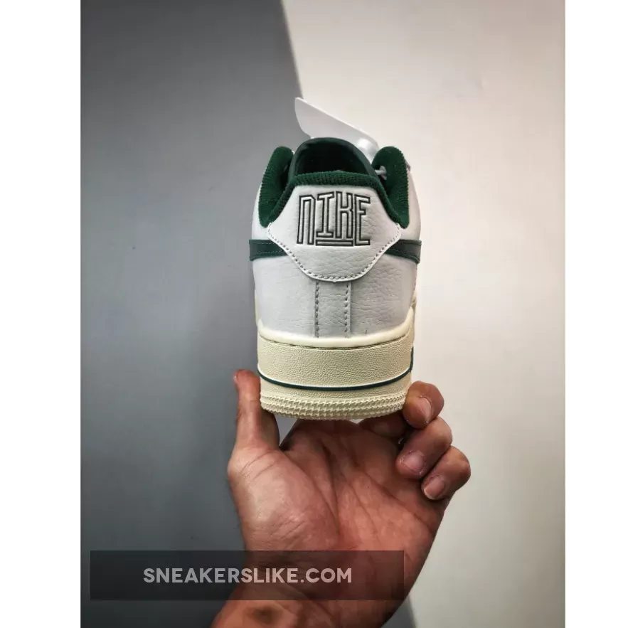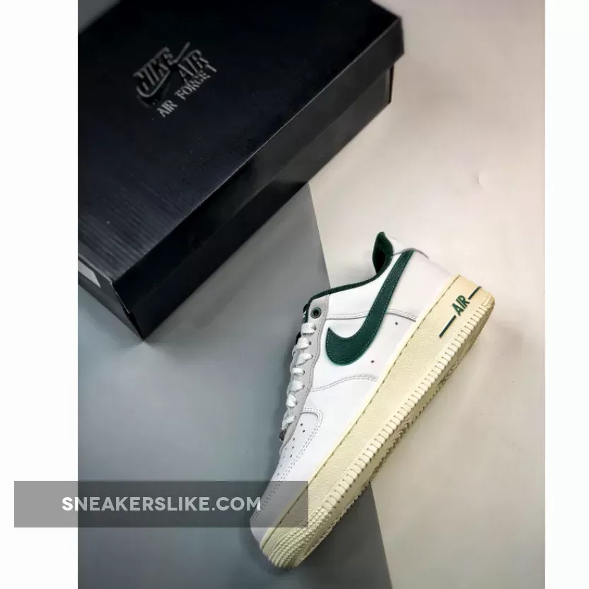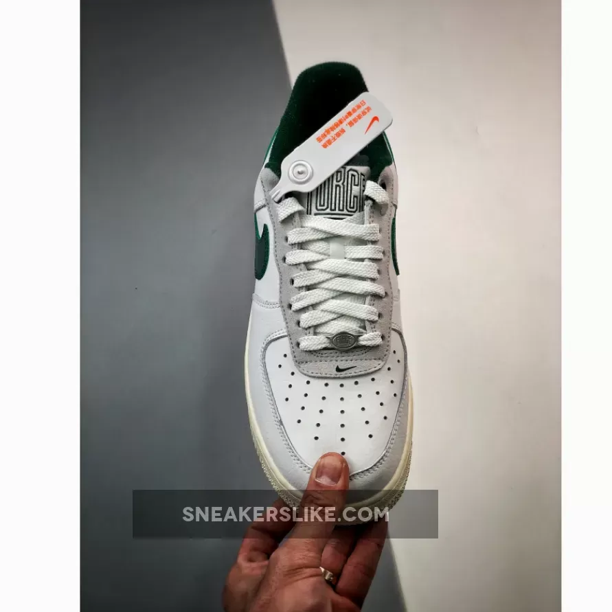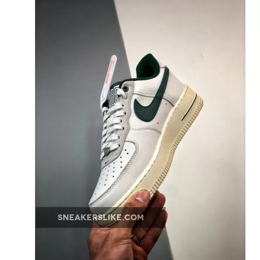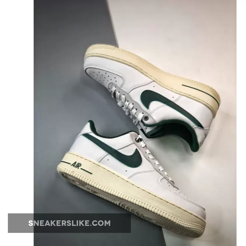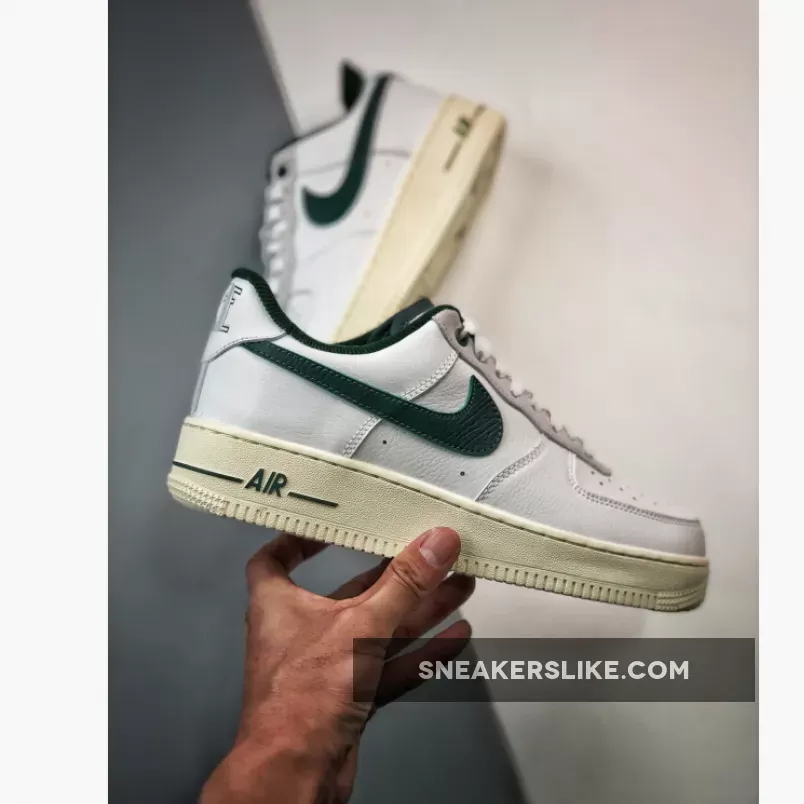 Nike’s forty-one-year-old classic silhouette, the Air Force 1, has a new variant in white, grey, and a gorgeous dark green. Introducing the Nike Air Force 1 Low Command Force White Green. This low-top AF1 has a heavily tumbled Summit White leather upper. Sail-coloured suede eye stay panels provide light contrast. The signature profile Swooshes that glide across both the medial and lateral mid-panels are in dark Gorge Green. The terry sock liner and the tongue lining all follow suit. Gorge Green “Force” outline branding stands out on the Summit White tumbled leather tongues.