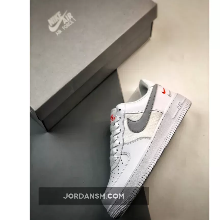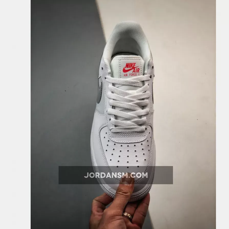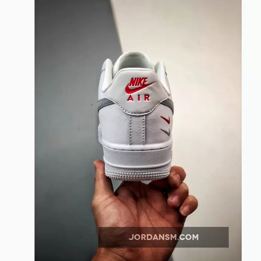 Minimal yet striking, the Nike Air Force 1 Low Triple Swoosh White is versatile and great for pairing with multiple looks. It has a crisp colourless design that features a textured woven-like midfoot, a perforated toe, and smooth leather for the forefoot and backside areas. Adding subtle contrast is the grey Nike Swoosh that shoots across the lateral and medial sides. Meanwhile, red-orange and off-white mini embroidered Nike Check add a touch of colour. Bright red also comes in through the tongue tag and footbed branding. Finally, flat white laces tie everything together. Further down, you’ll find the traditional chunky Air Force 1 Low sole unit that packs comfy cushioning.
