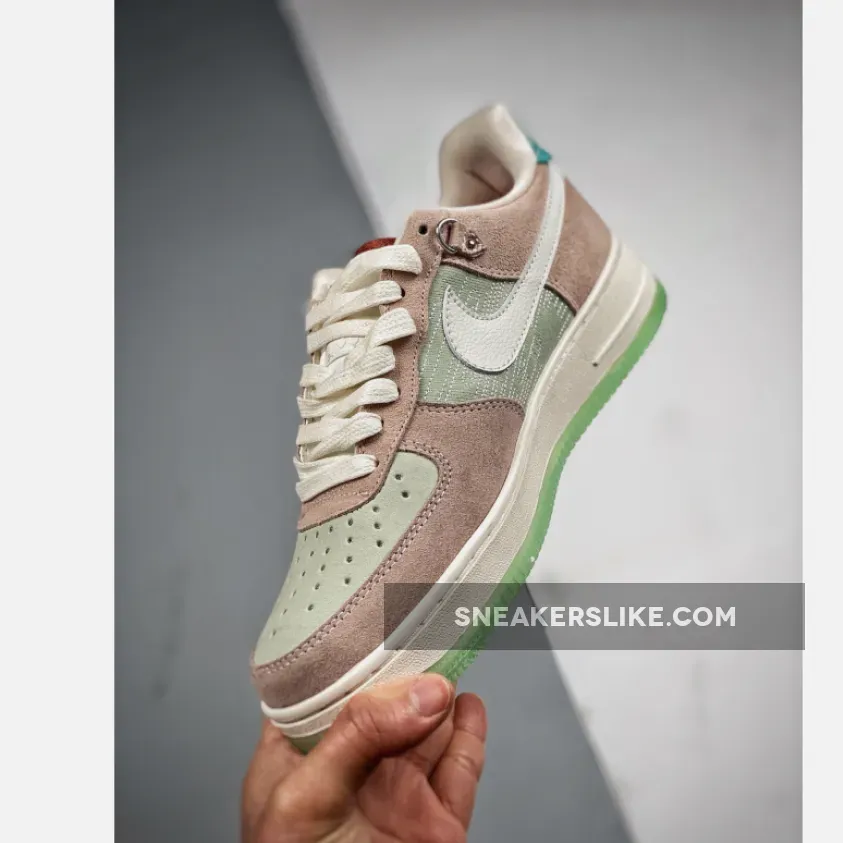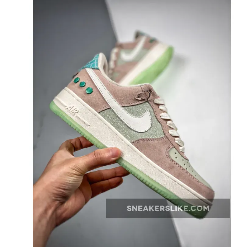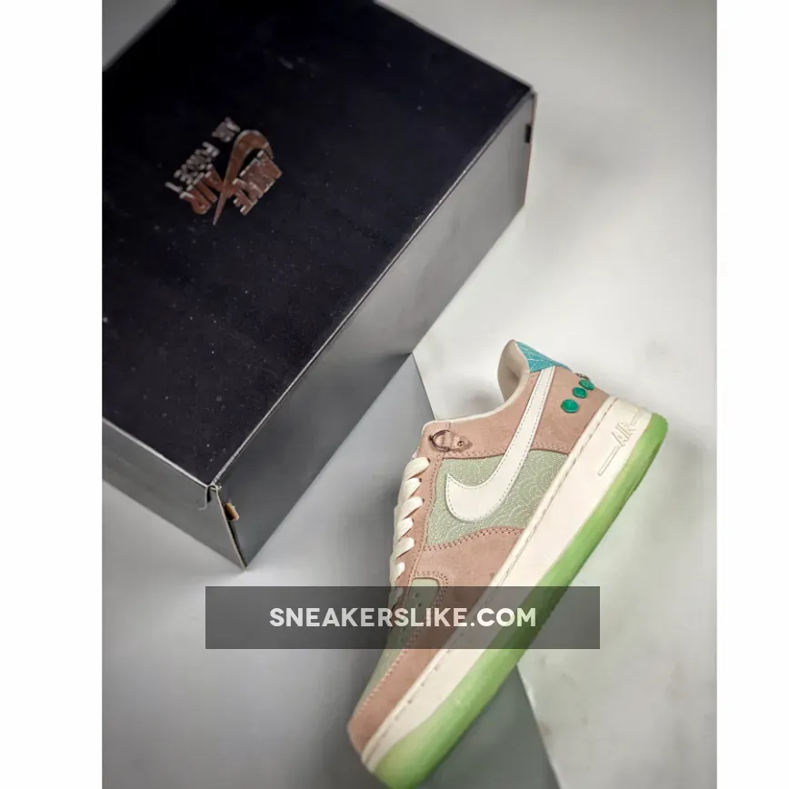 China appears to be the main inspiration on this Nike Air Force 1 Low that combines special Jade ornaments and bright shades. Unique stitching appears on the panels and heel, while new branding lands on the tongue and insoles, where the ’Shapeless, Formless, Limitless nickname derives from. Pink suede adorns the overlays, Green accents run throughout, and ‘NIKE INTERNATIONAL’ branding on the tongue with what looks to be individual numbering. Other highlights include metal hardware and a vibrant Green on the rubber outsole.