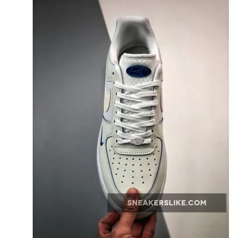 This AF1 has an entirely neutral look except for royal blue accents. The toe box is off-white in smooth leather while the tumbled leather toe cap, mudguard, the eye stay panel and foxing are in greyish white. The mid-panels are bright white smooth leather. The signature profile Swooshes on the medial and lateral sides of the shoe are smooth cream-coloured leather, matching the heel tab. Royal blue stands out in the form of the oval tongue tab with a metallic finish, the embroidered mini Swooshes on the lateral mudguard, the embroidered branding on the heel tab and the Swoosh, peace sign and global symbols on the white mesh insole. A white metallic lace deubré, a Sail-coloured midsole and a milky white semi-translucent outsole cap off the style of this shoe. Catch the Nike Air Force 1 Low Global White on Our Store Supplier app and never miss any new introductions from Nike’s release calendar.