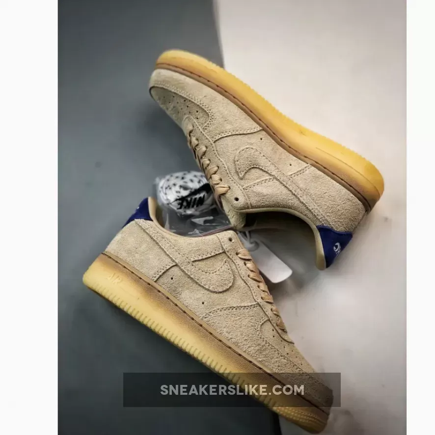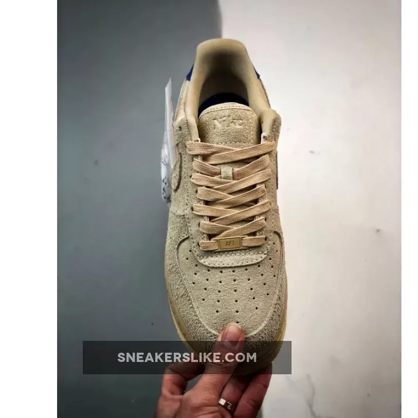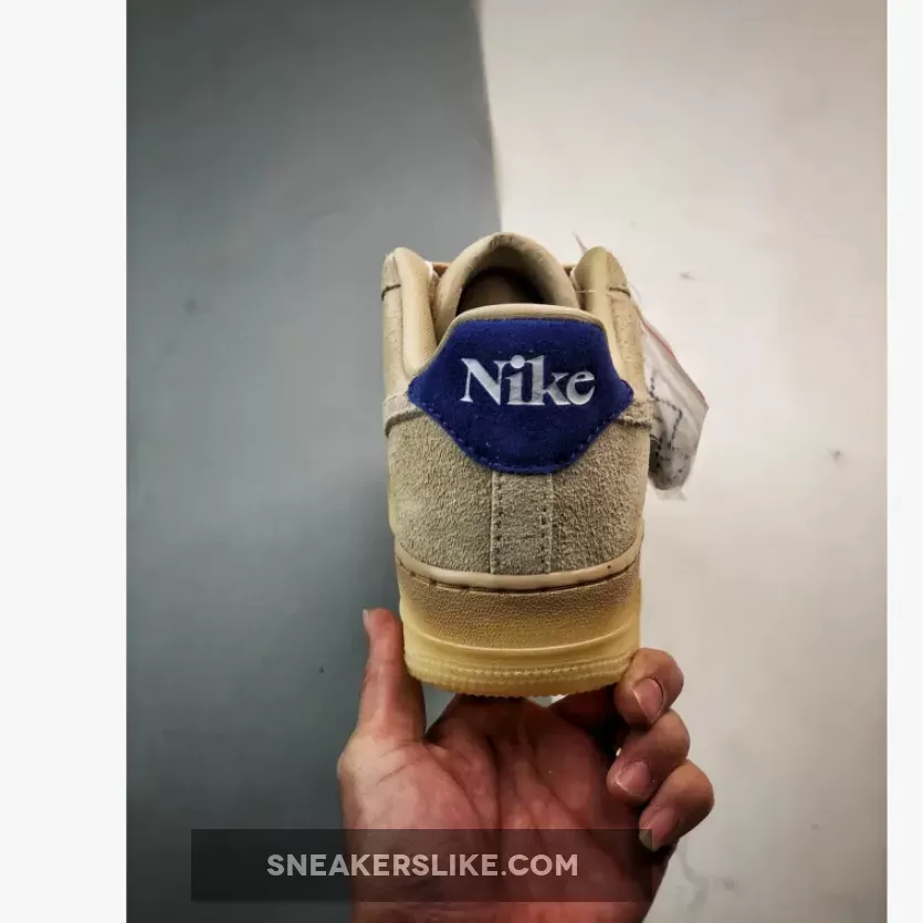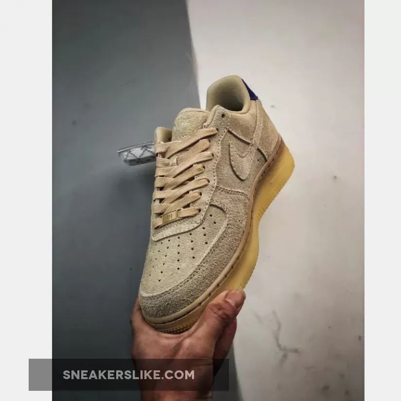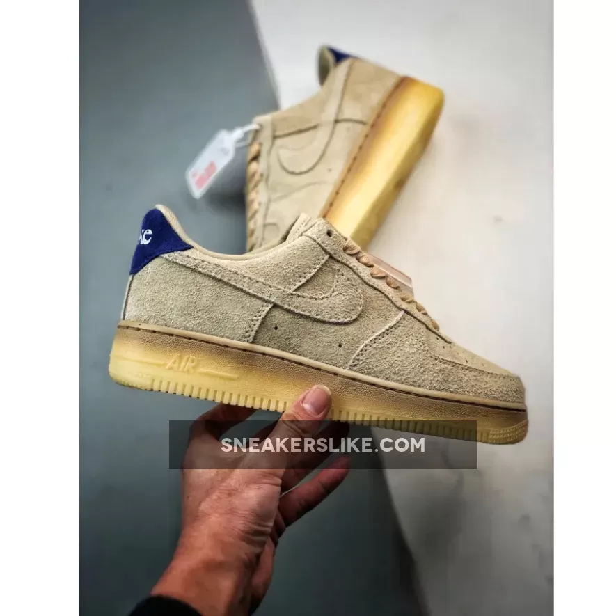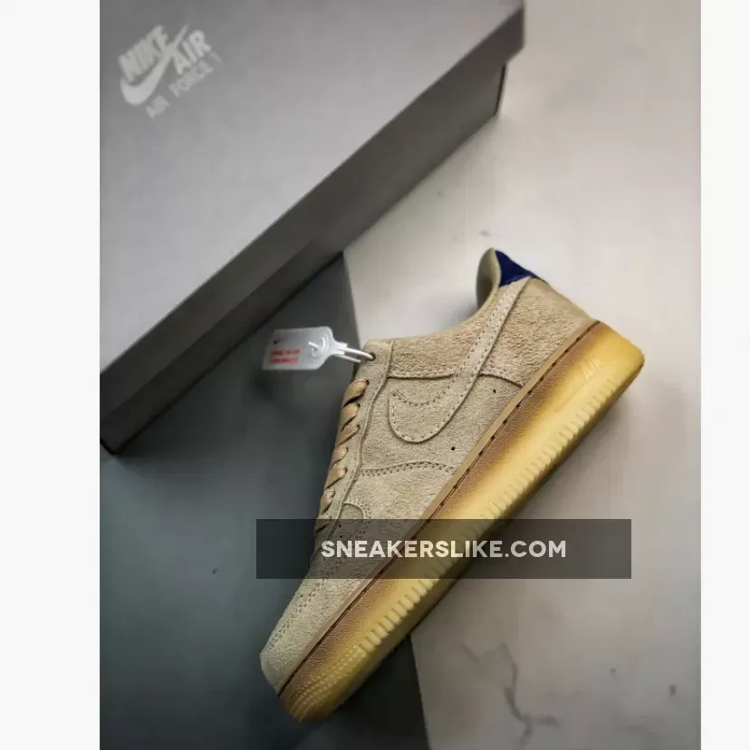 the AF1 staple is dressed in a grain, deep royal blue and polar color scheme. The show ditches its typical leather build and is instead covered in full in a shaggy suede material. The textured feel extends to the entirety of the upper, tongue, Swoosh and heels. The upper itself is covered in the grain color to match the Swoosh, laces and inner lining. Royal blue accents the heel tabs and insoles while the Nike branding is contrasted in white on the heels and insoles for added detailing. The shoe sits atop a semi-translucent rubber outsole to round out the design.