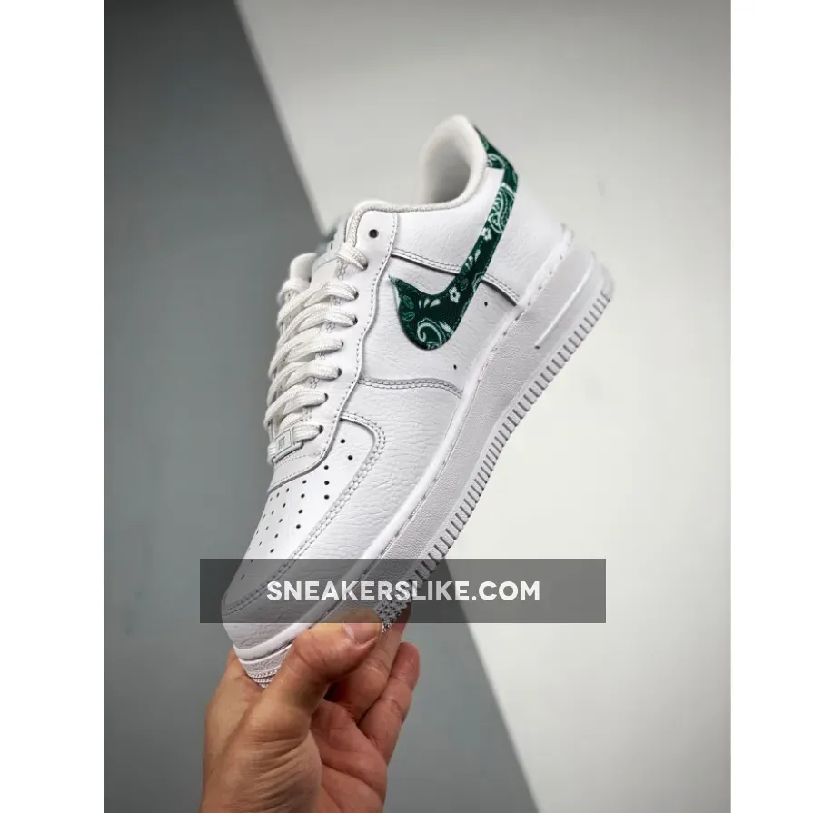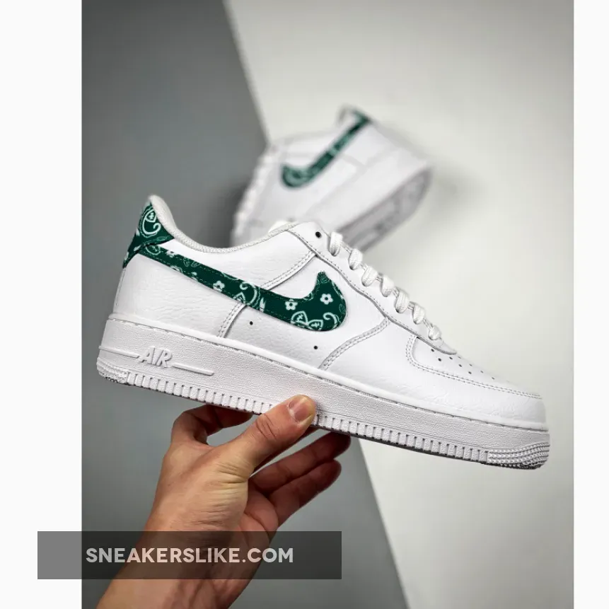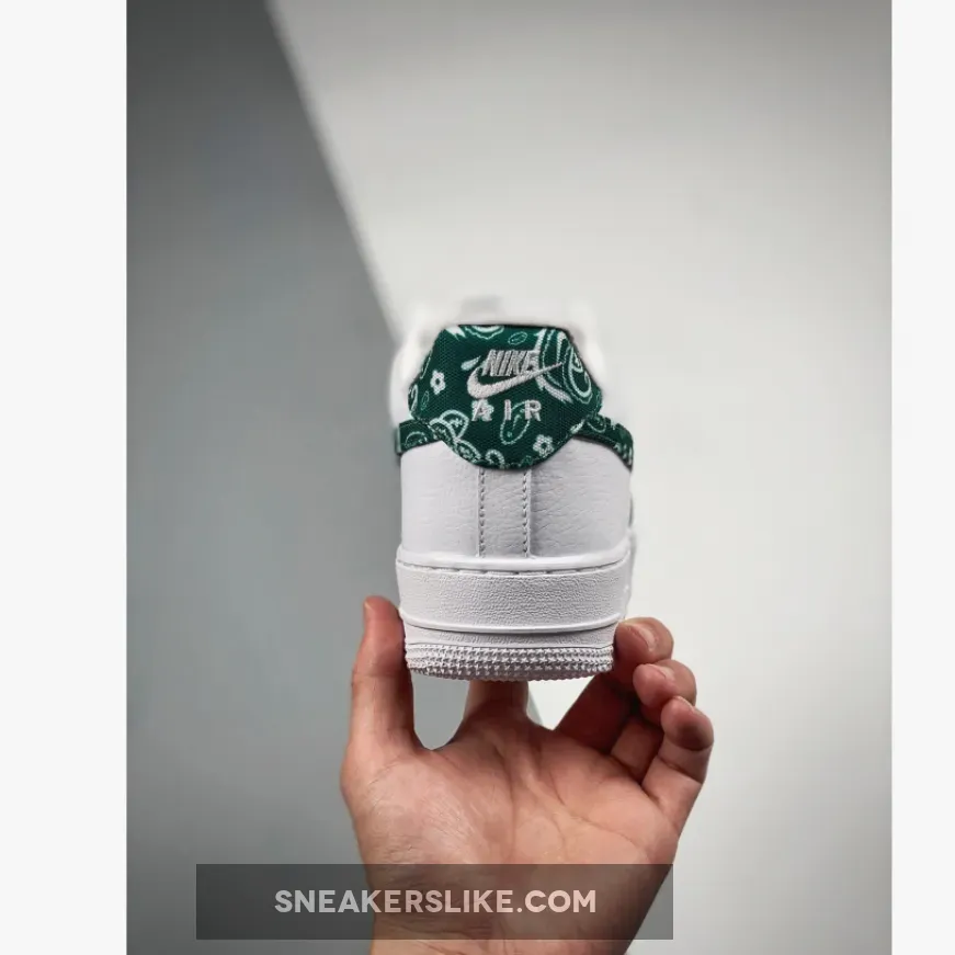 Give your outfits a fresh and modern touch with the Nike Air Force 1 Green Paisley. Released alongside its siblings — the Paisley Bandana and Black Paisley — this version also features the same simple but striking look. It boasts a triple-white colourway; the entire upper including the throat and ankle area are outfitted with pebbled white leather. Disrupting the colourless look of the shoe is the eponymous Green Paisley pattern in the Nike Swoosh and heel tab which acts as a garnish to this shoe’s delicious design.