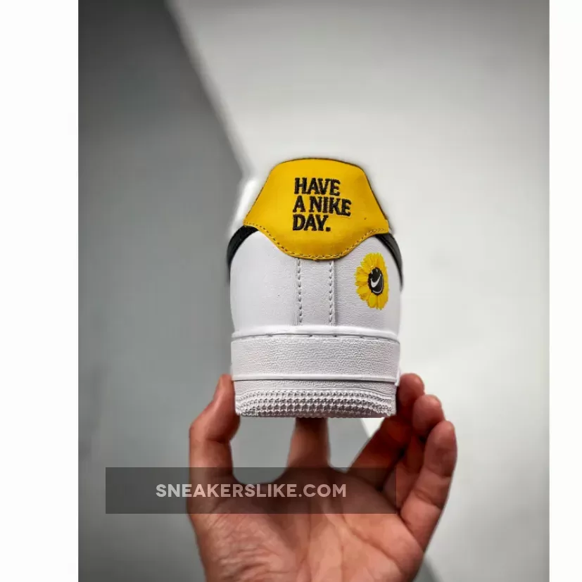 What’s fashion without a little fun? The Nike Air Force 1 Low Have A Nike Day White Black brings a dose of joyful flair to your outfit with its perky design that’s meant to put a smile on your face (or on anyone who sees it.). An all-white smooth leather upper serves as the canvas for this Air Force 1 Low. Decorating it is a sunflower image with a quirky “Nike Check smile”. More hints of yellow come in the tongue tag and at the heel tab which features a “Have A Nike Day” text. Meanwhile, black Swooshes across the lateral and medial sides balance out the bright palette.