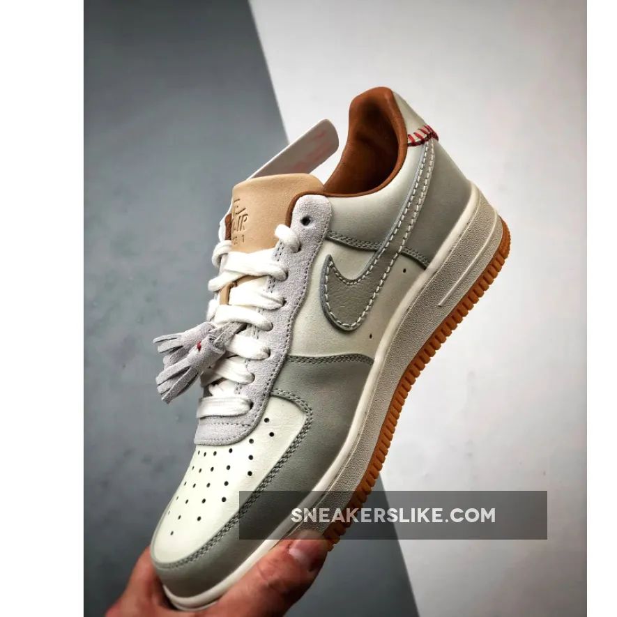 In Light Bone, Sail, Light British Tan, and Gum Yellow tones, the Air Force 1 Low exudes sophistication. Crafted from premium leather and suede, the sneaker integrates tassels seamlessly into its design. The cowhide tongue proudly displays the debossed Nike Air logo, while subtle red stitching accents the back heel tab. These elements harmonize with the Sail midsole and Gum rubber outsole, creating a refined look.