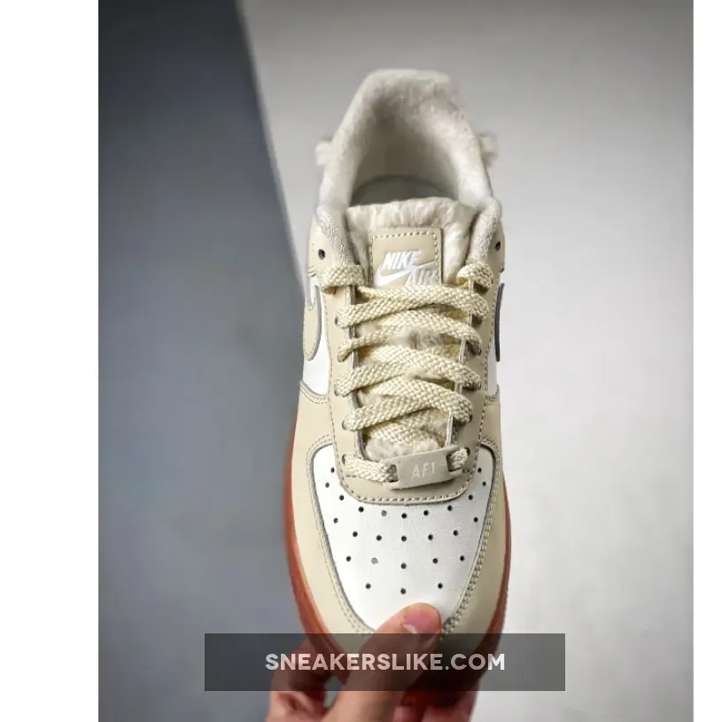 The Nike Air Force 1 Low LX “Sail/Gum/Faux Fur” is a women's exclusive shoe that is perfect for the winter season. The shoe features a split color blocking design with crisp white on the vamp and quarter, while an off-white “Sail” tint cascades across the smooth leather overlays, profile swooshes, and heel tabs. The shoe is stamped with a clad gum sole unit underfoot, which reminisces back to Odell Beckham Jr’s own vibrant yellow SF AF1 Mid construction from November 2017. The shoe also has a soft terry lining that imbues the proposition with insulated warmth while messy faux fur stretches out from the tongue construction and heel. The plush, untamed faux fur that spills from the tongue and heel encapsulates a sense of winter-ready warmth, making it perfect for the colder months. The Nike Air Force 1 Low LX “Sail/Gum/Faux Fur” is a stylish and practical shoe that is sure to keep your feet warm and comfortable during the winter season.