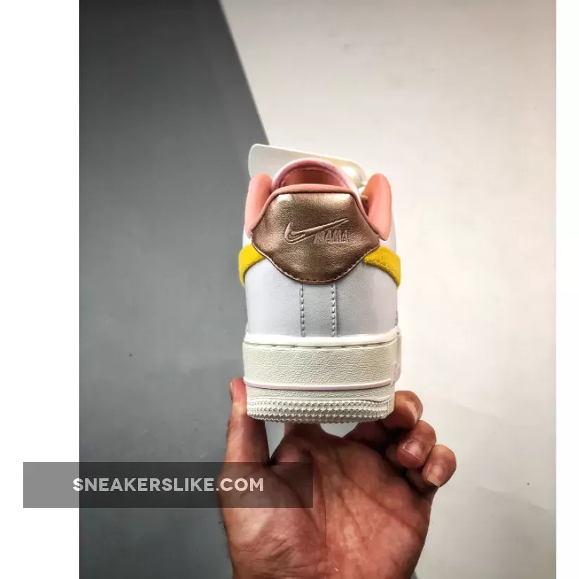 Arriving in a classic white leather construct, the design is set atop a sail sole unit to adhere to the in-vogue aged-look aesthetic. From there, the pair is overhauled with terry cloth finishes, with yellow Swooshes and tongue tags joining peach liners. The heel overlay is set in light pink satin, with the titular “Mama” or “Mini” motif embroidered in tonal thread for mum and daughter respectively.