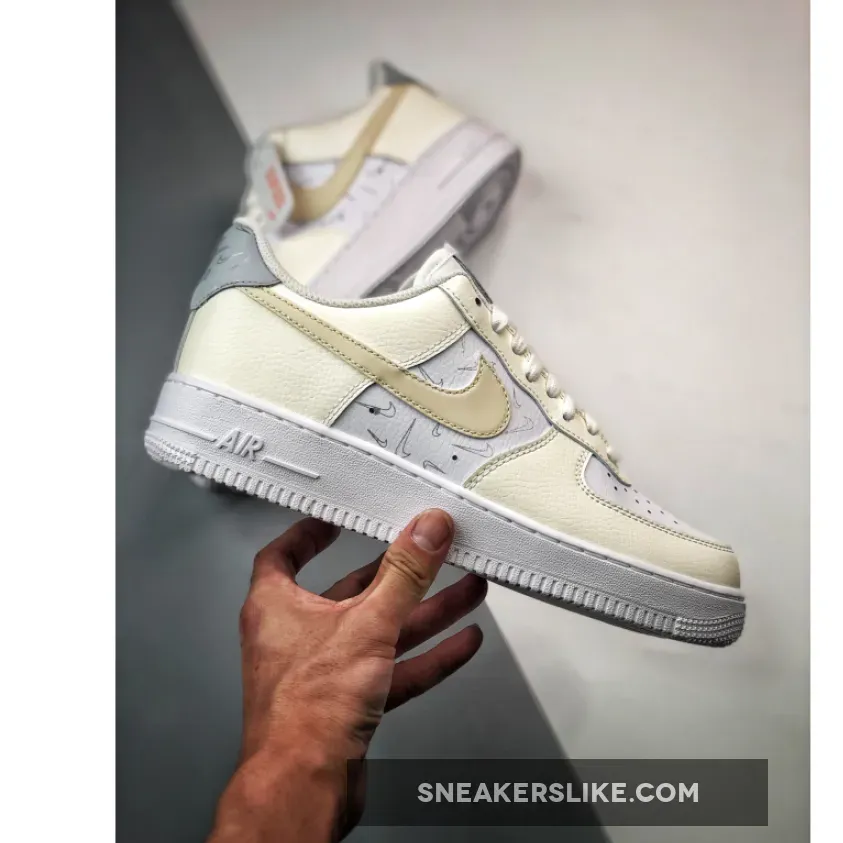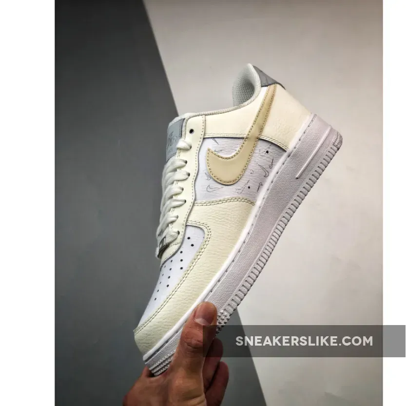 The Bruce Kilgore-designed Nike Air Force 1 has always been known for experimentation. Its new iteration, the Nike Air Force 1 Low White Sail Grey, combines minimalist colour blocking and an abundance of mini Swooshes. The base of the upper is a smooth and perforated white leather on the toe box and the mid-panel. The overlays are a tumbled leather in Sail on the toe cap, the eye stay panel, the heel panel and the signature profile Swooshes on both the medial and the lateral sides. The eye-catching detail on this shoe are the mini Swooshes in light grey scattered all over the mid-panel and the heel tab. But wait. There’s more. These mini Swooshes along with the main profile Swooshes have a reflective finish that makes them glow in the dark. This clean White-and-Sail combo sits atop a white sole unit. Lastly, a gold metallic AF1 deubré finishes off the shoe’s design. Get the surprising Nike Air Force 1 Low White Sail Grey on Our Store Supplier app and always be up-to-date with the latest Nike release dates.
