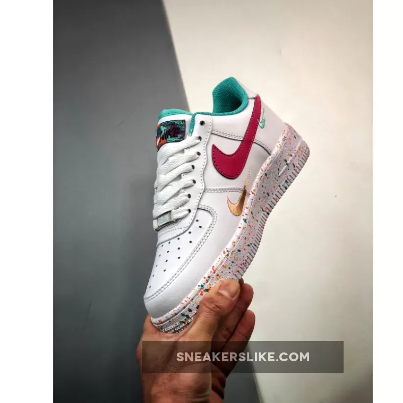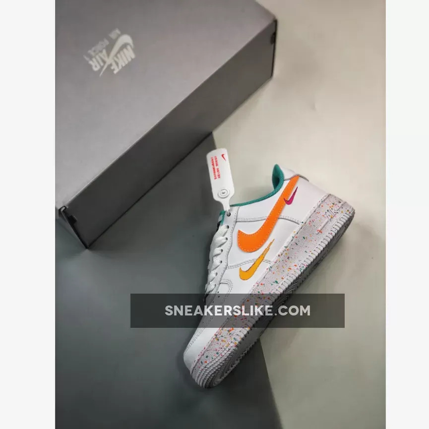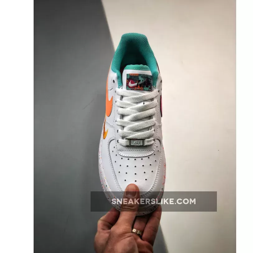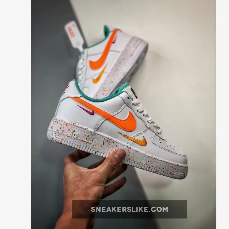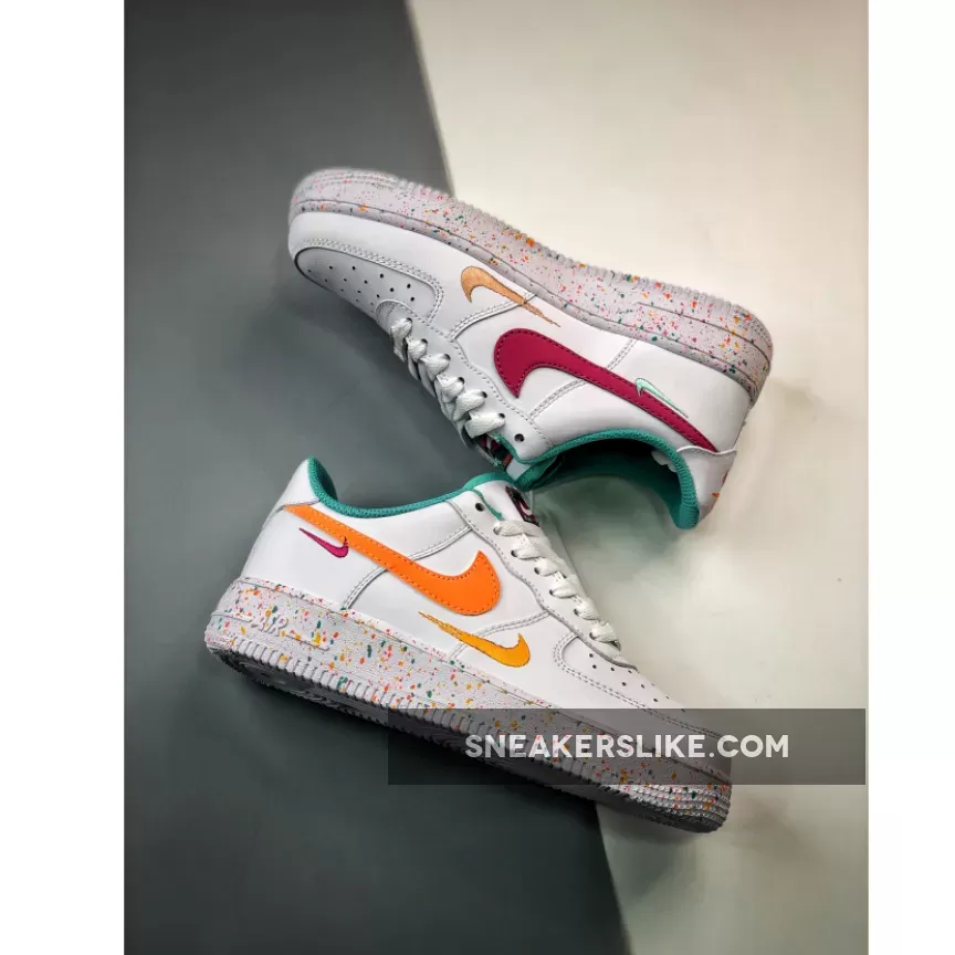 AF1 but make it extra fun. The Nike Air Force 1 Low GS White Teal begins with a crisp smooth white leather upper which includes the perforated toe, quarters and overlays. It is then decorated with playful additions such as the triple Swoosh design which sees the side panels featuring a leather Swoosh — orange for the lateral side, and pink for the medial side — with tangerine and berry red embroidered Checks on its side. The shoe is further brightened up by the teal lining along the tongue and the inner portion.