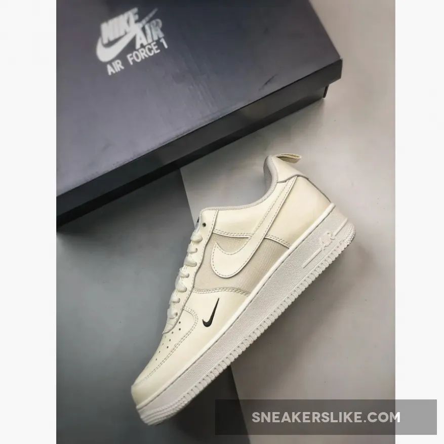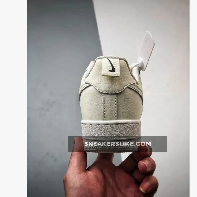 This iteration sports a pristine white leather upper with durable ripstop mesh on the quarter panel. The upper boasts a creamy, off-white hue, the sole unit a lighter sail shade, setting the stage for a minimalist yet striking look. A vibrant red mini Swoosh adorns the outer forefoot and heel pull tab, complementing the traditional leather Swooshes on the sides. Red AF1 branding appears on the nylon tongue and sockliner.
